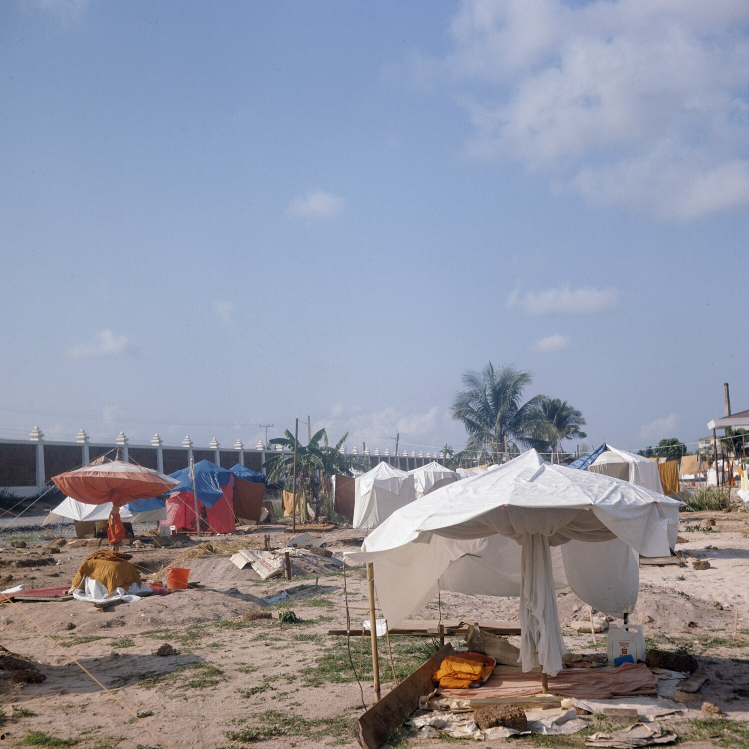Het jongetje Iek met zijn broer en zus onder de deke...