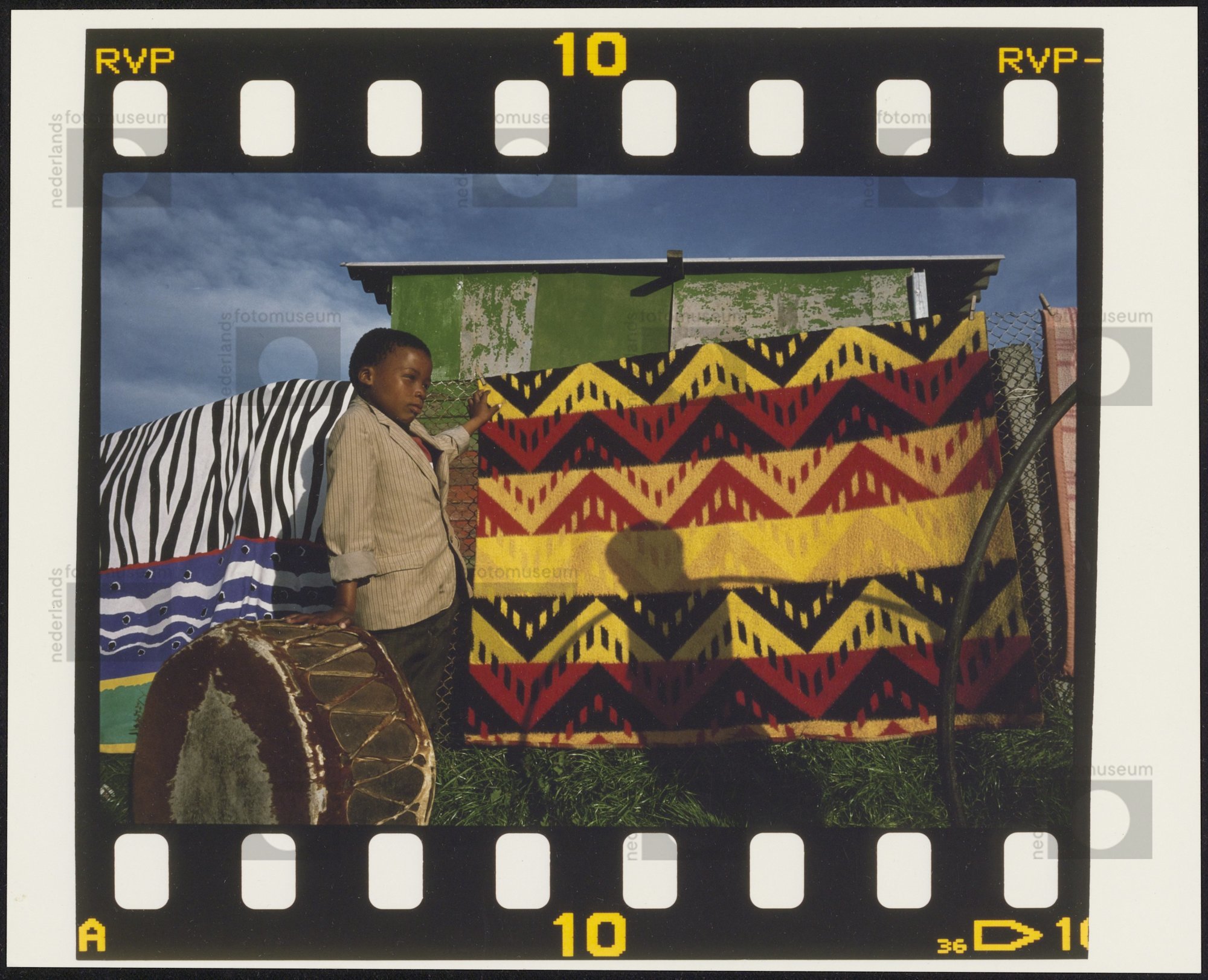 Gestreepte omslagdoek die ook als deken gebruikt wor...