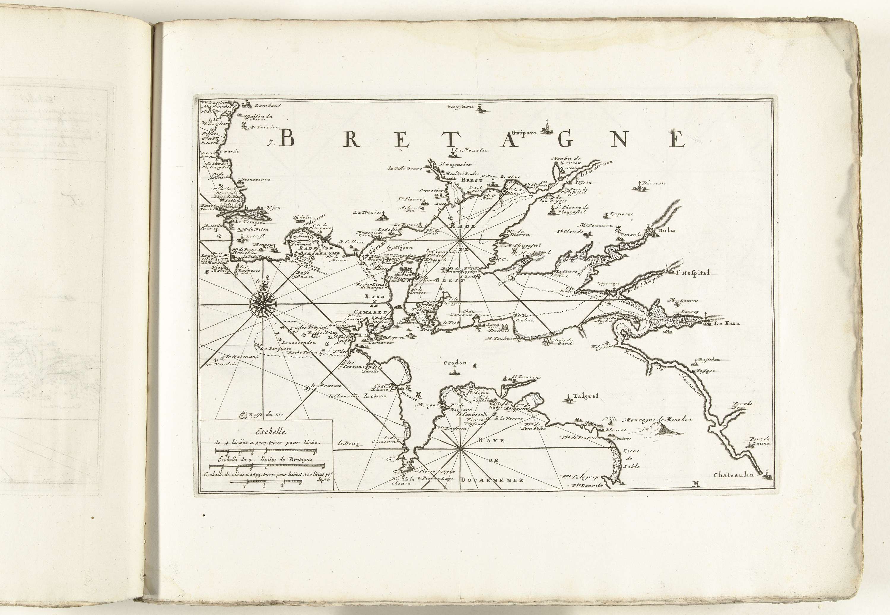 Kaart van de westkust van Bretagne bij Brest, ca. 1702