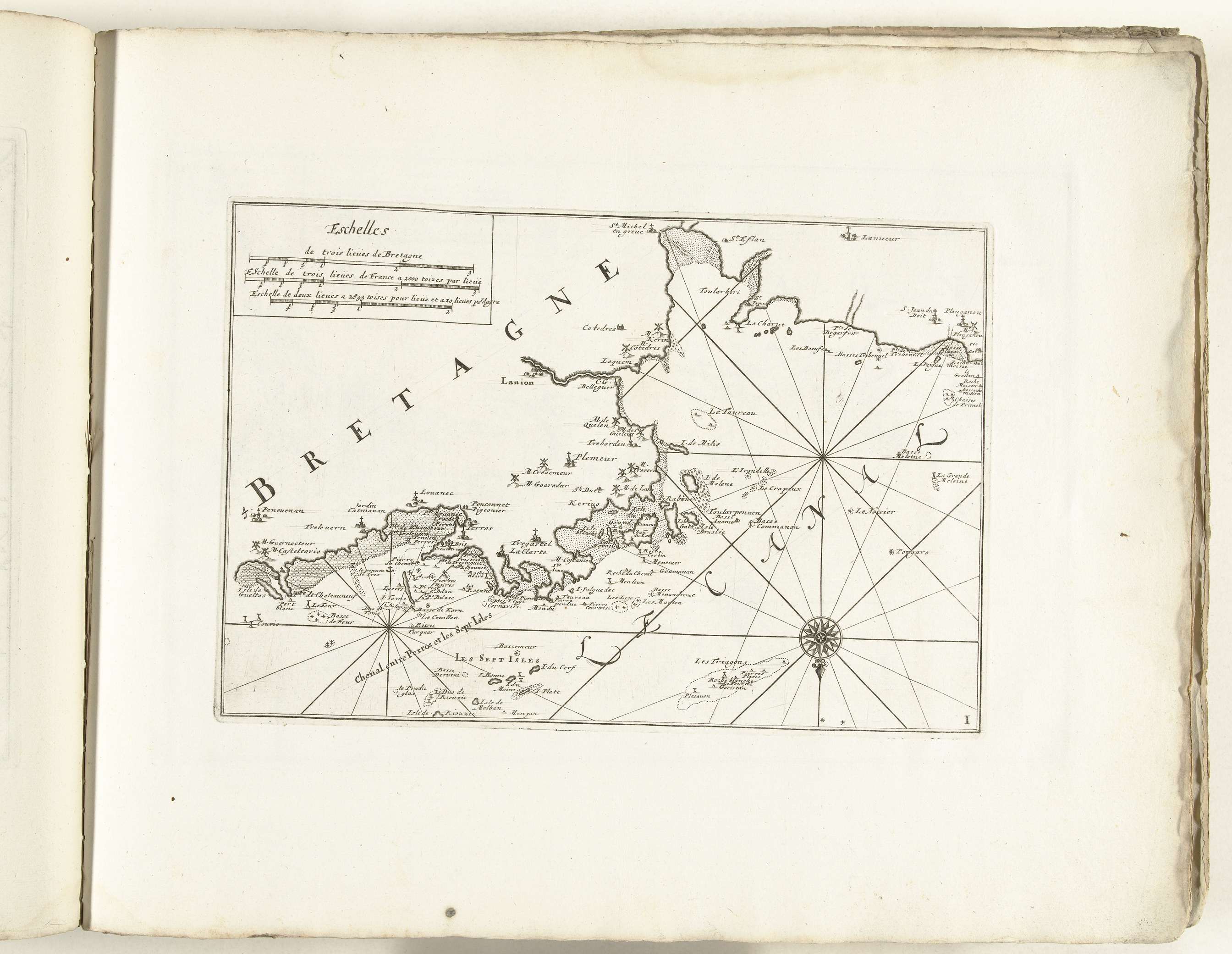 Kaart van de noordkust van Bretagne, ca. 1702