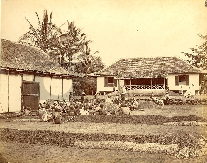 Een koffieplantage in de bergen van Sukabumi, Preang...