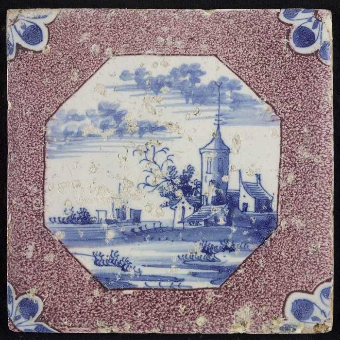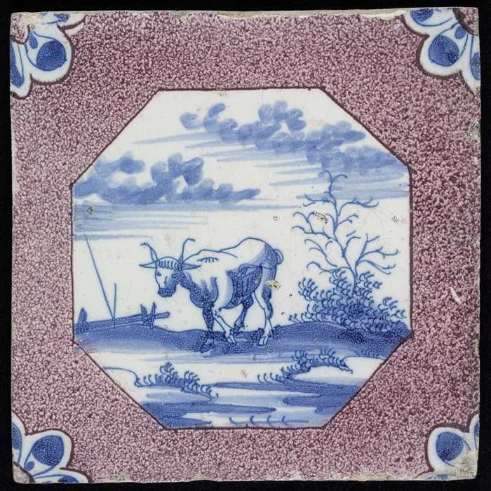 Dierentegel, paars gesprenkelde tegel, in blauwe ach...