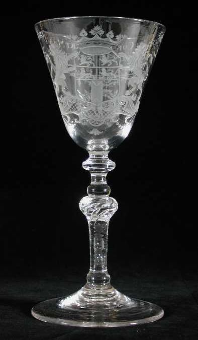 Kelkglas gegraveerd met "GeSegend sy Cornelis Hartma...