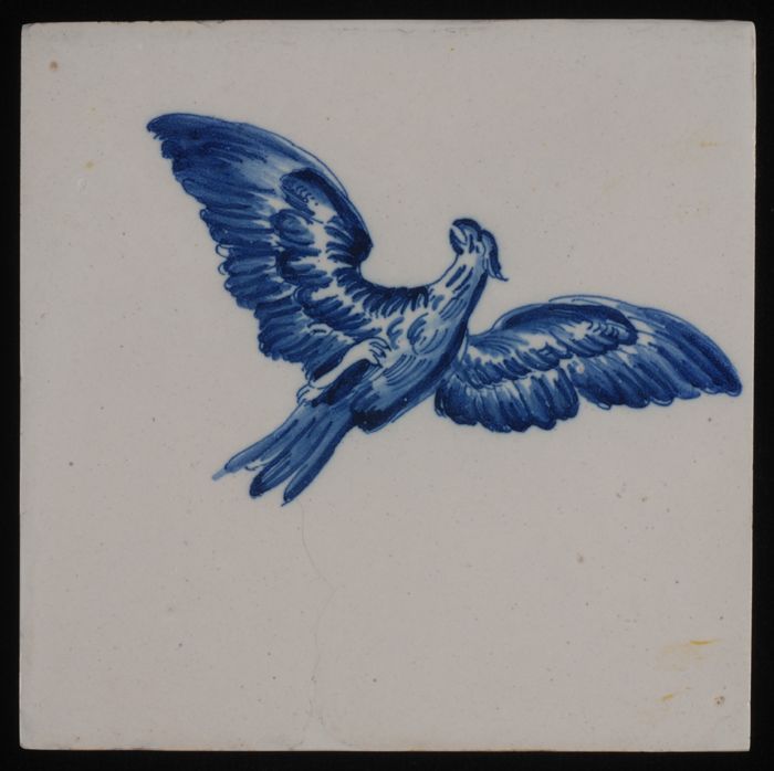 Tegel, blauw op wit, met de afbeelding van een valk ...