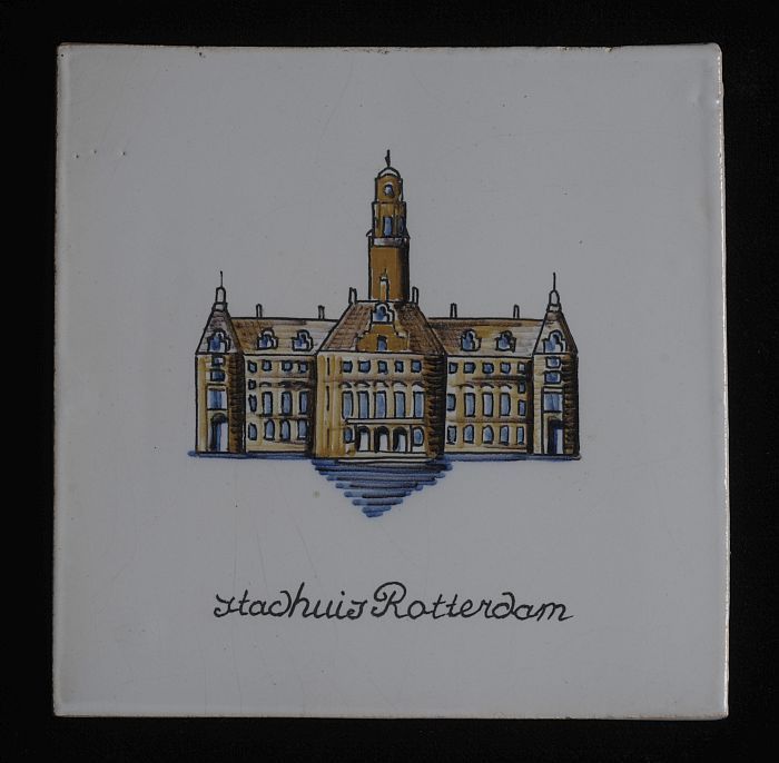 Siertegel met afbeelding van het stadhuis Rotterdam
