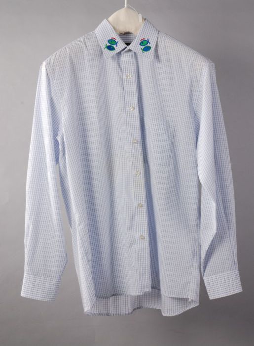 Blauw-wit geruit bedrijfsoverhemd van de firma Schmi...