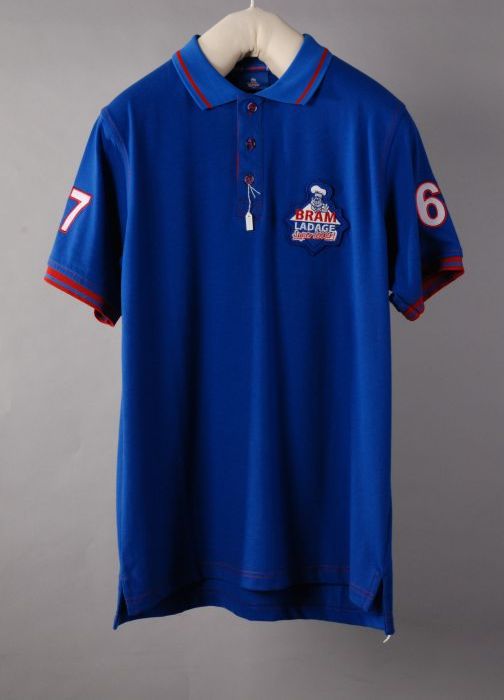 Wit poloshirt met blauwe opdruk "Stoker Fitness club...