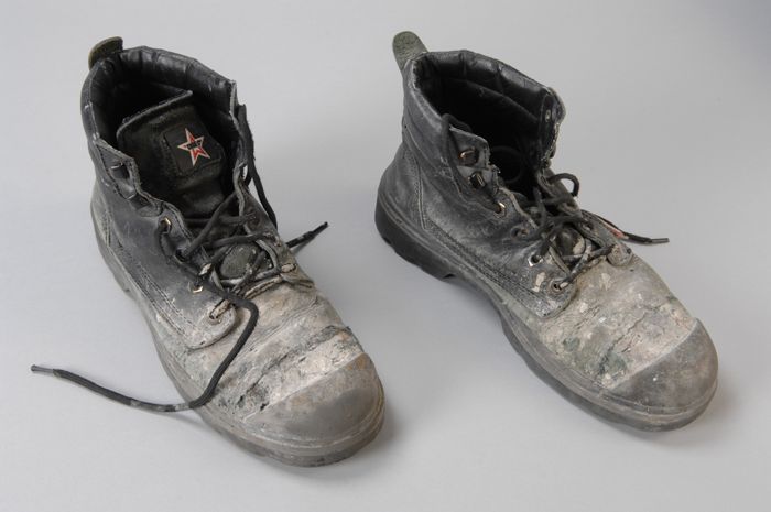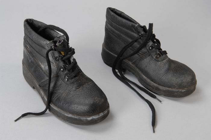 Zwarte werkschoenen, van Bulgaarse bouwvakker