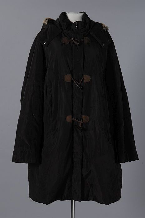 Bruine jas met losse capuchon met bontrandje, van Bu...