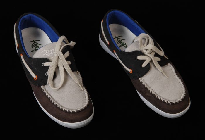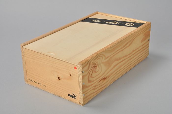 Houten doos met paar sneakers "Puma, WBC11, WORLD BB...