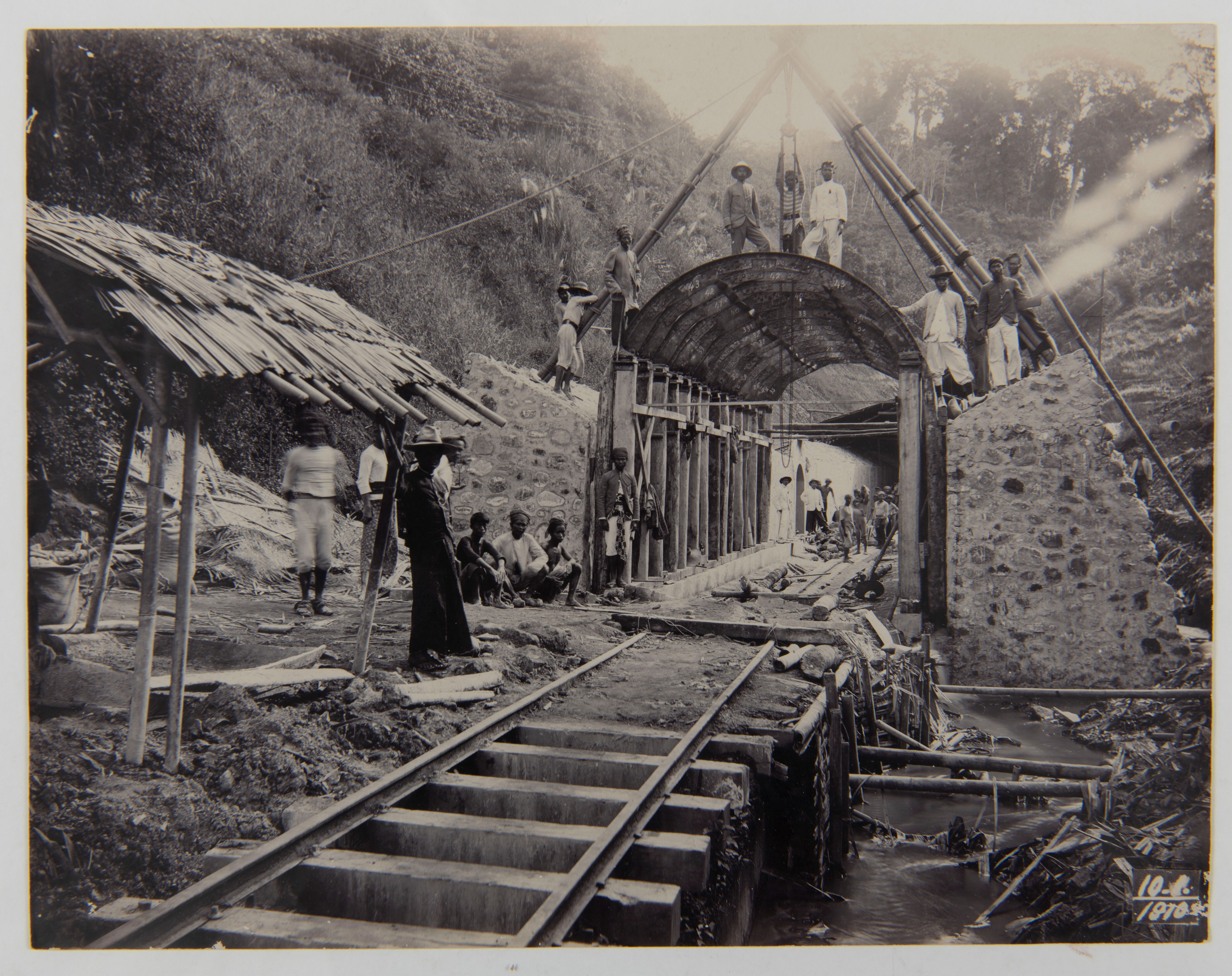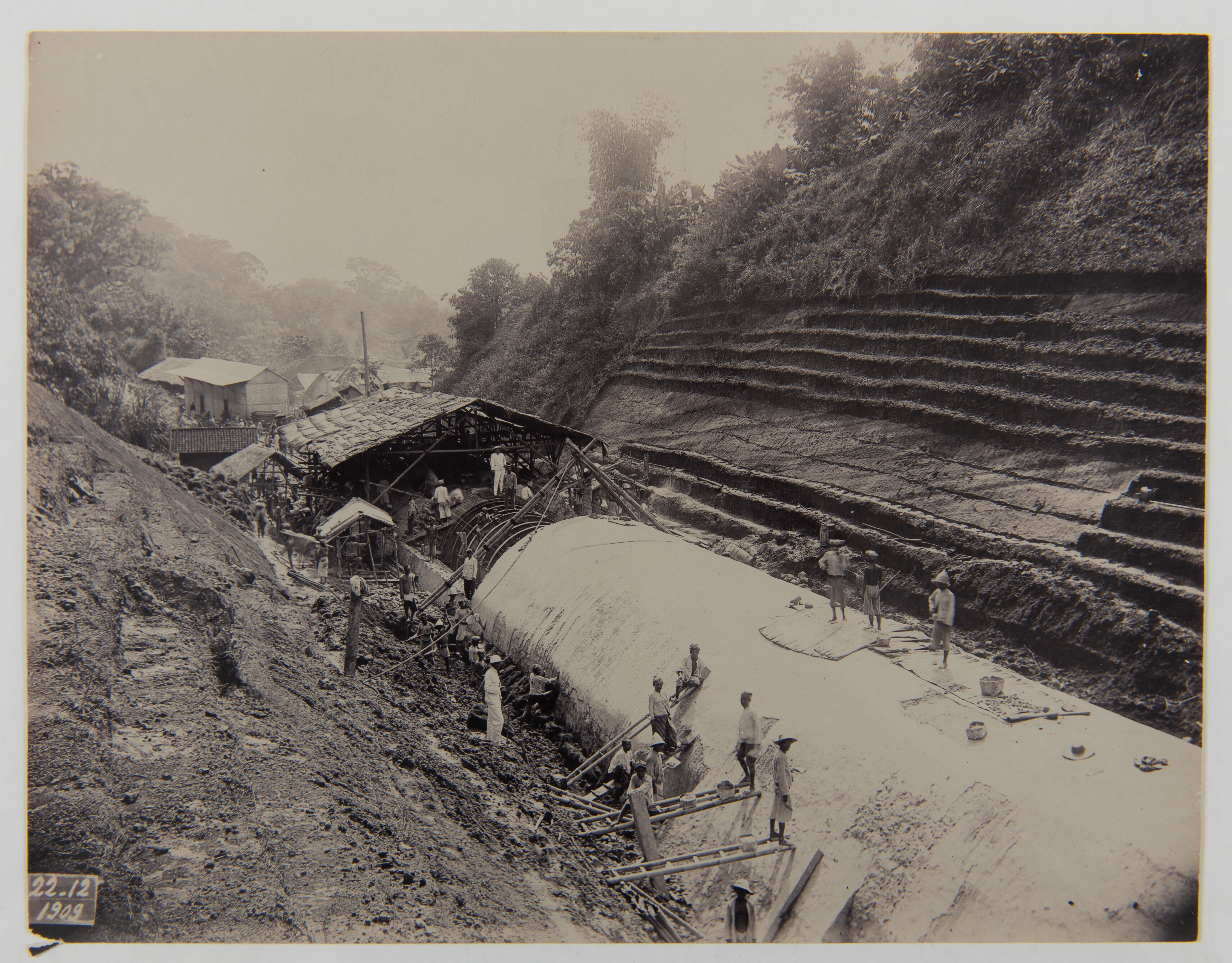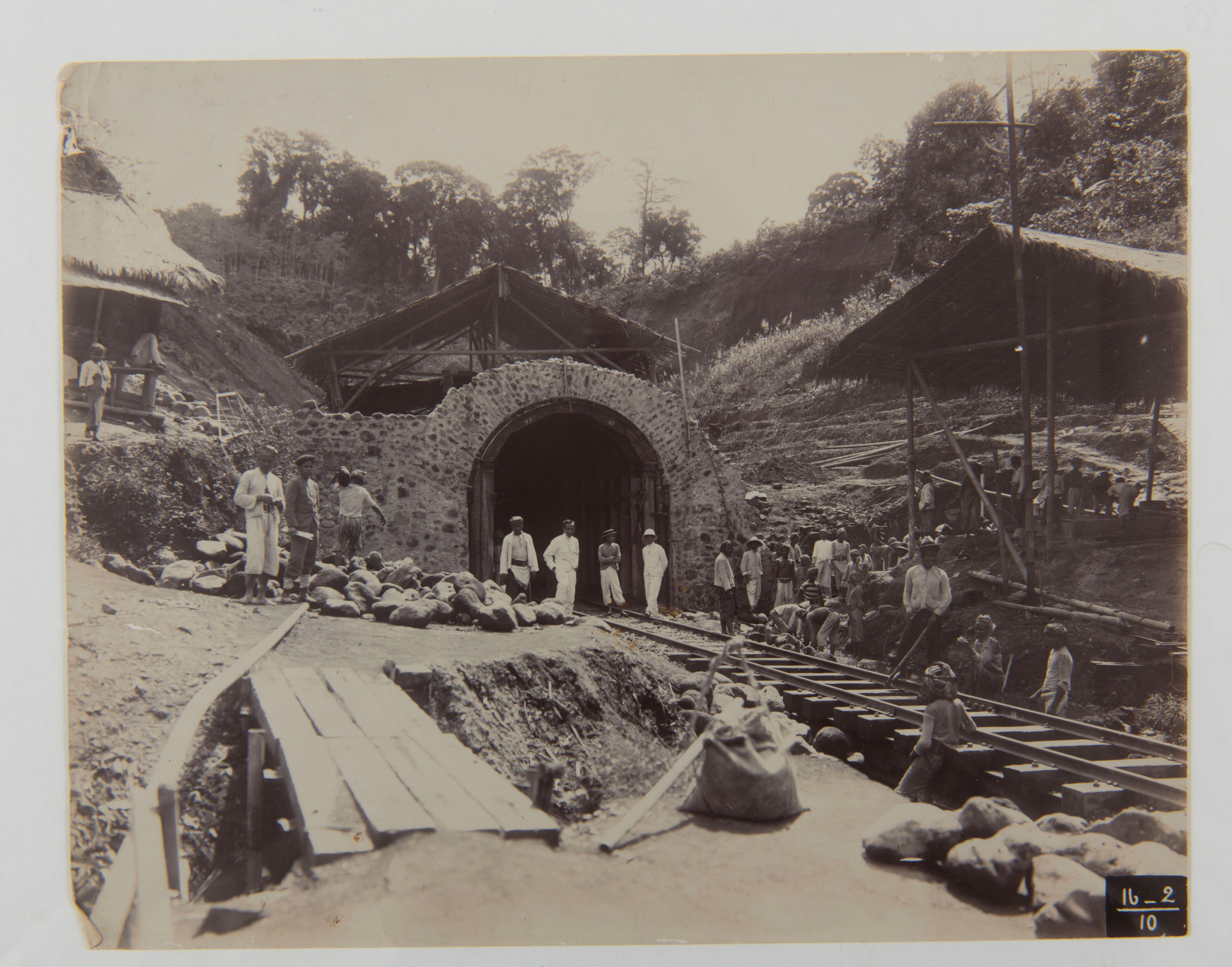 Arbeiders bij een in aanbouw zijnde spoorwegtunnel i...