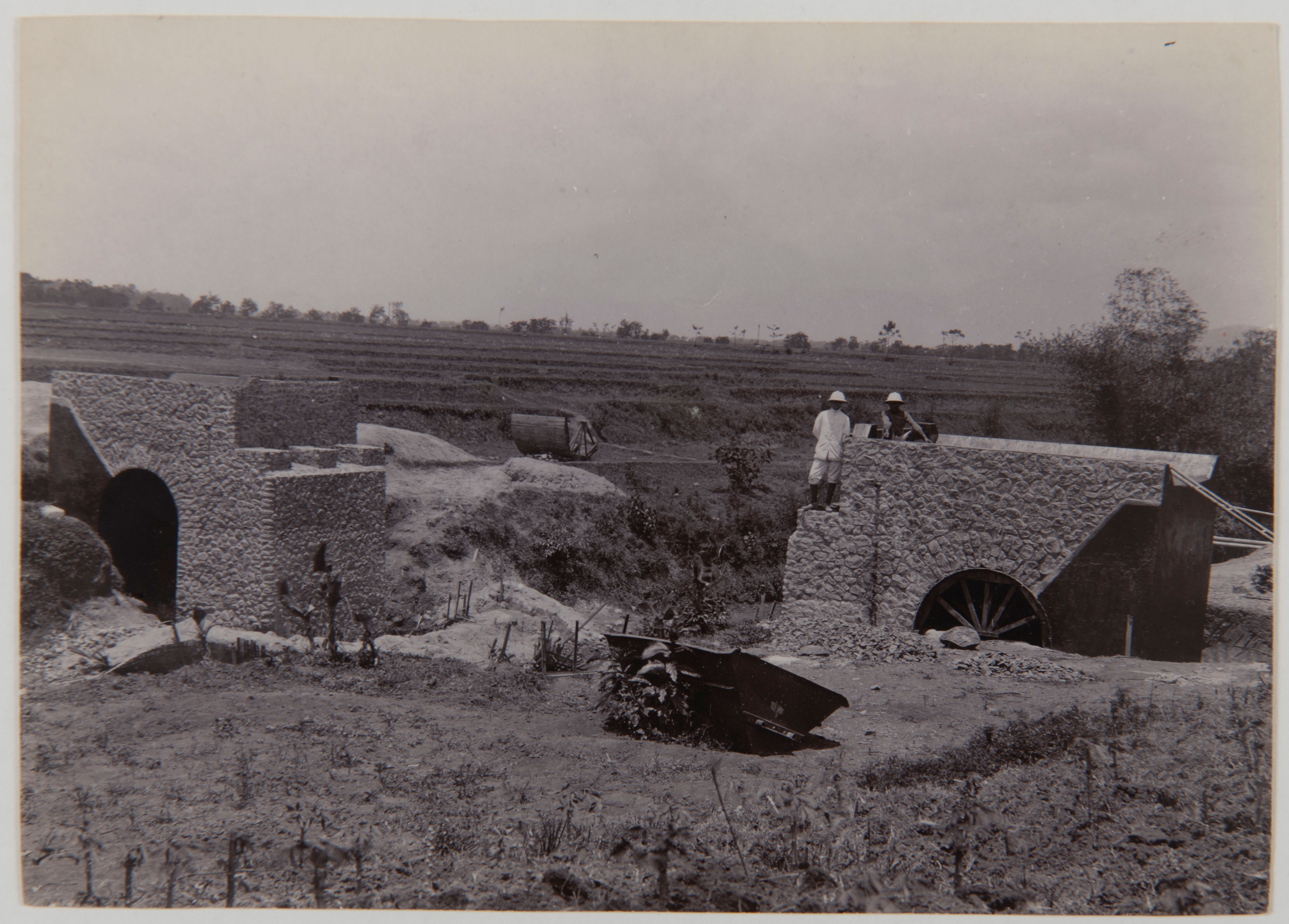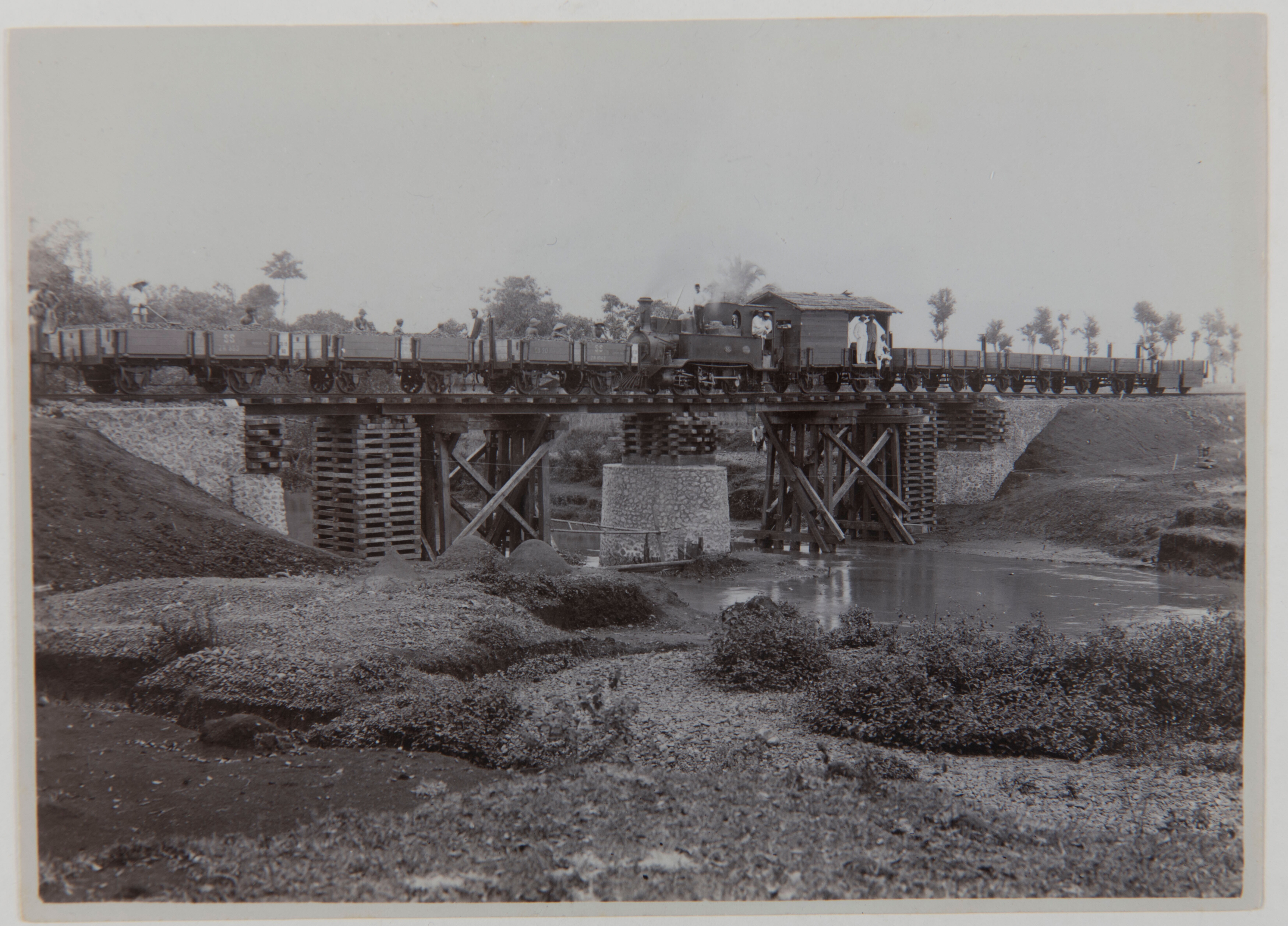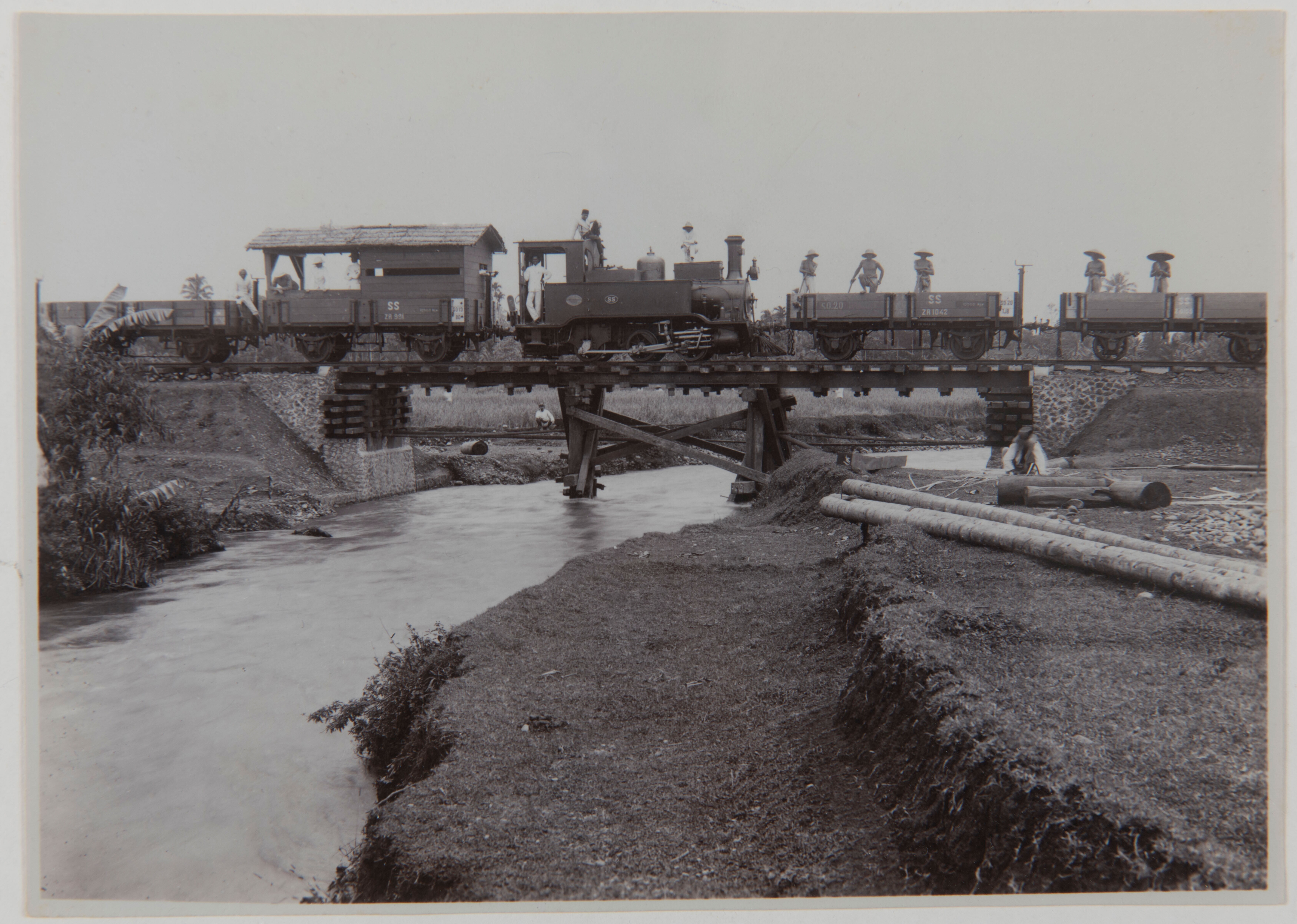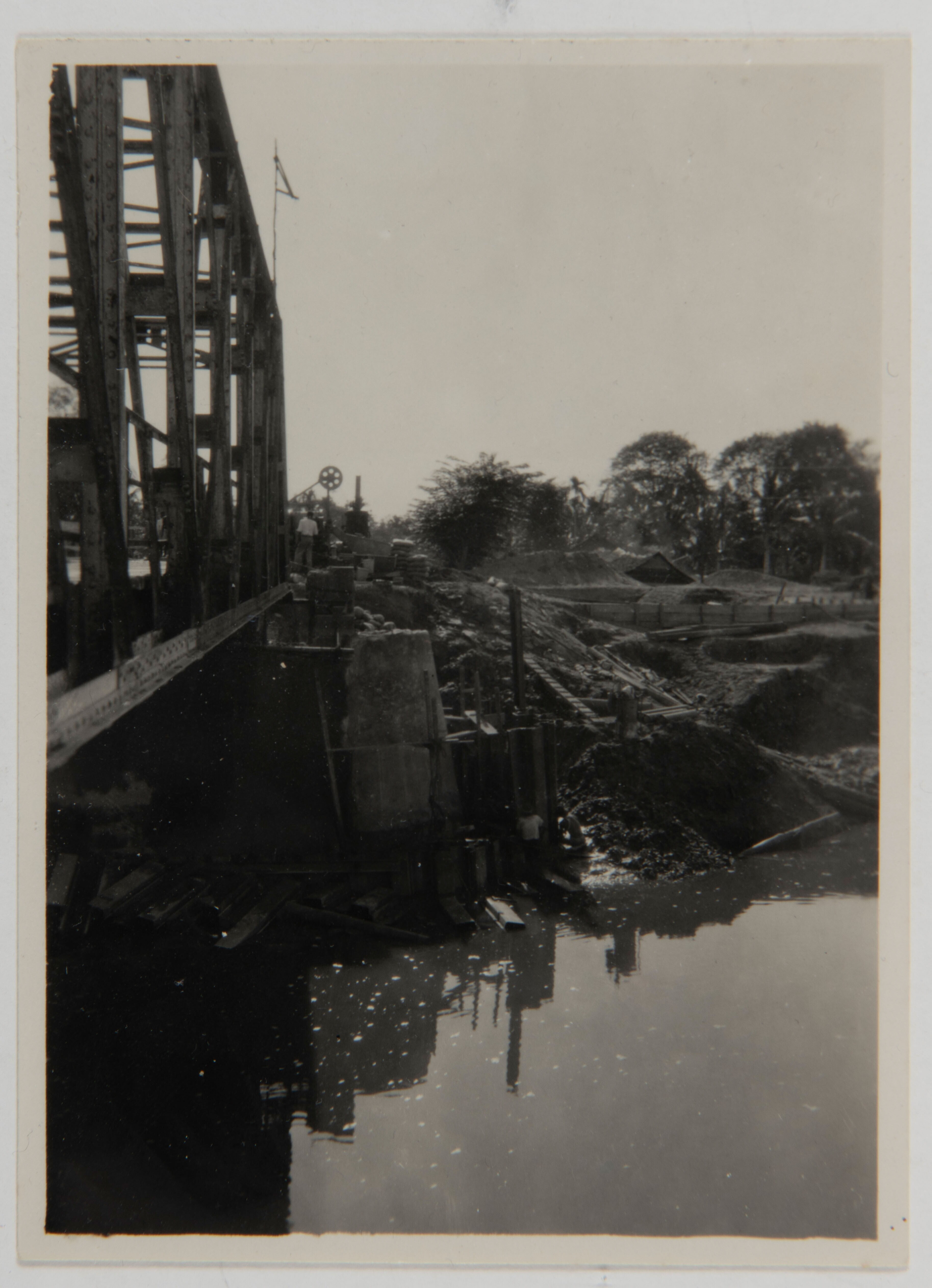 Aanleg van een spoorbrug op de lijn Bandjar-Parigi