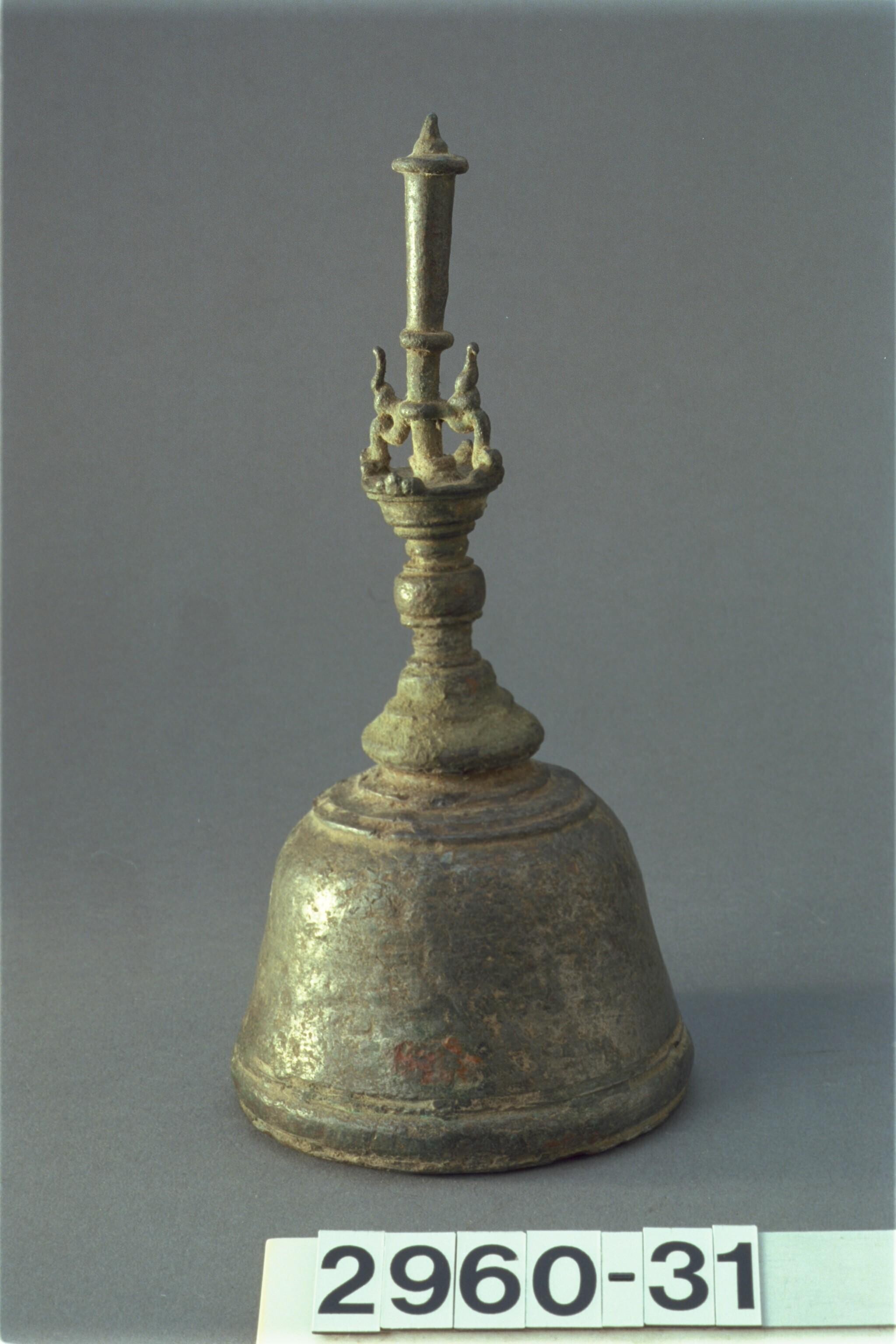 Indo-Javaanse bronzen priesterbel gesloten drietandbel