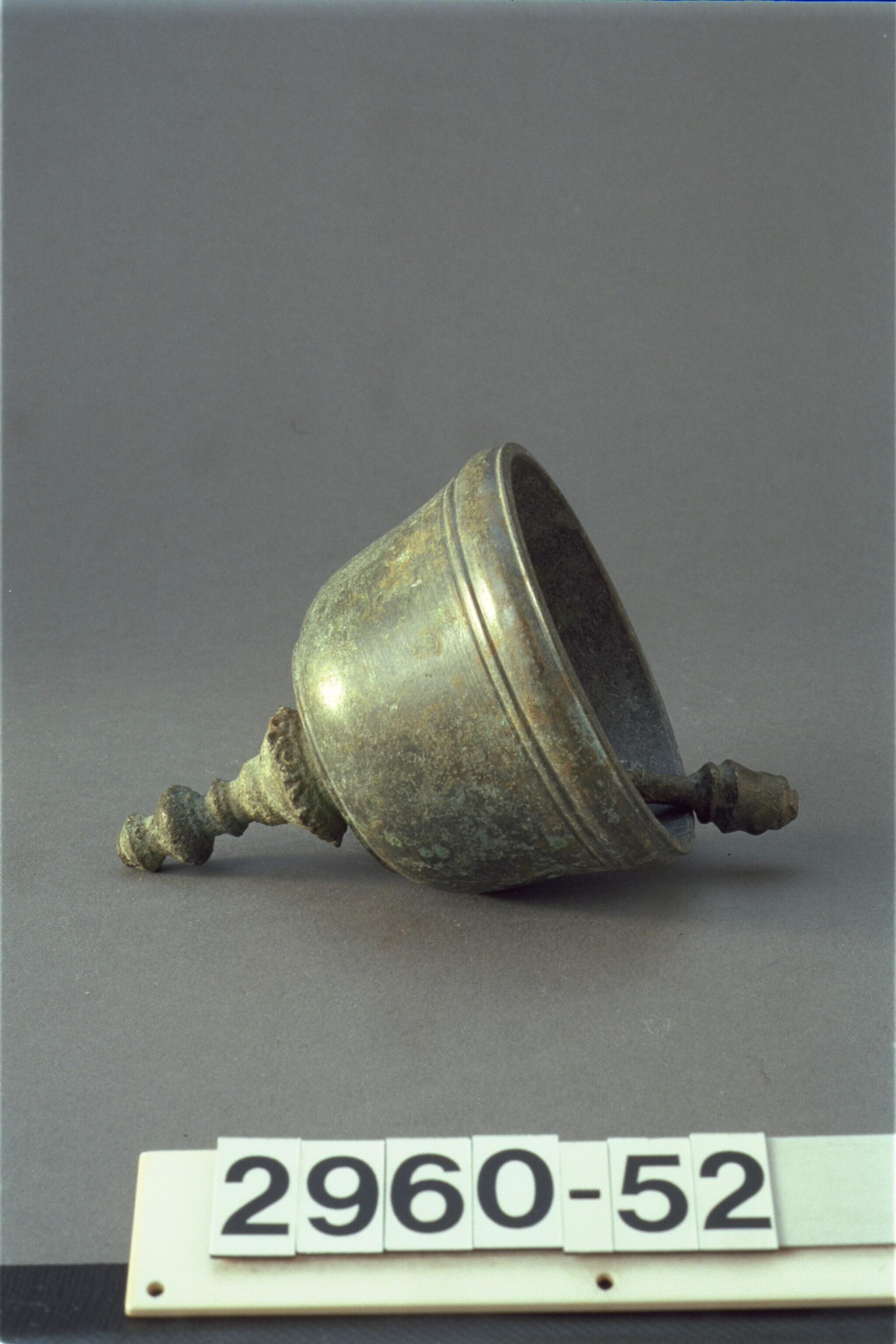 Bidschel met handvat (top afgebroken ) en klepel brons