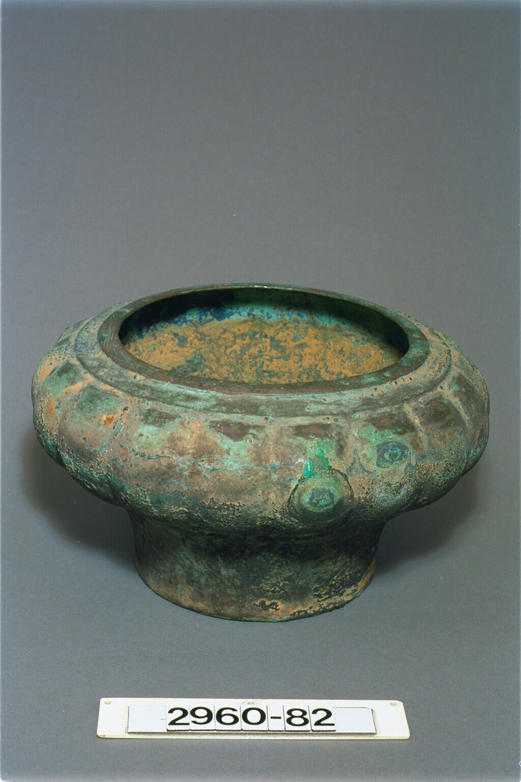 Indo-Javaanse wijwaterbak met gecanneleerde buik brons