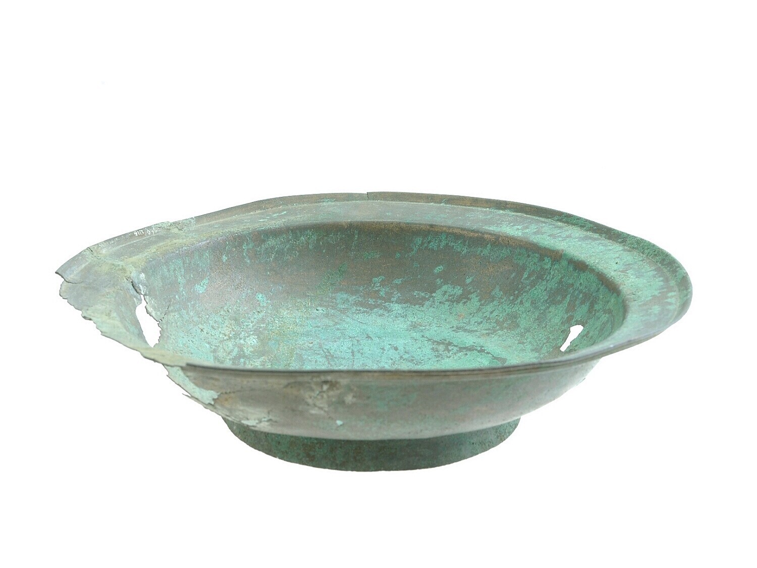 Indo-Javaanse schaal op voet beschadigd brons