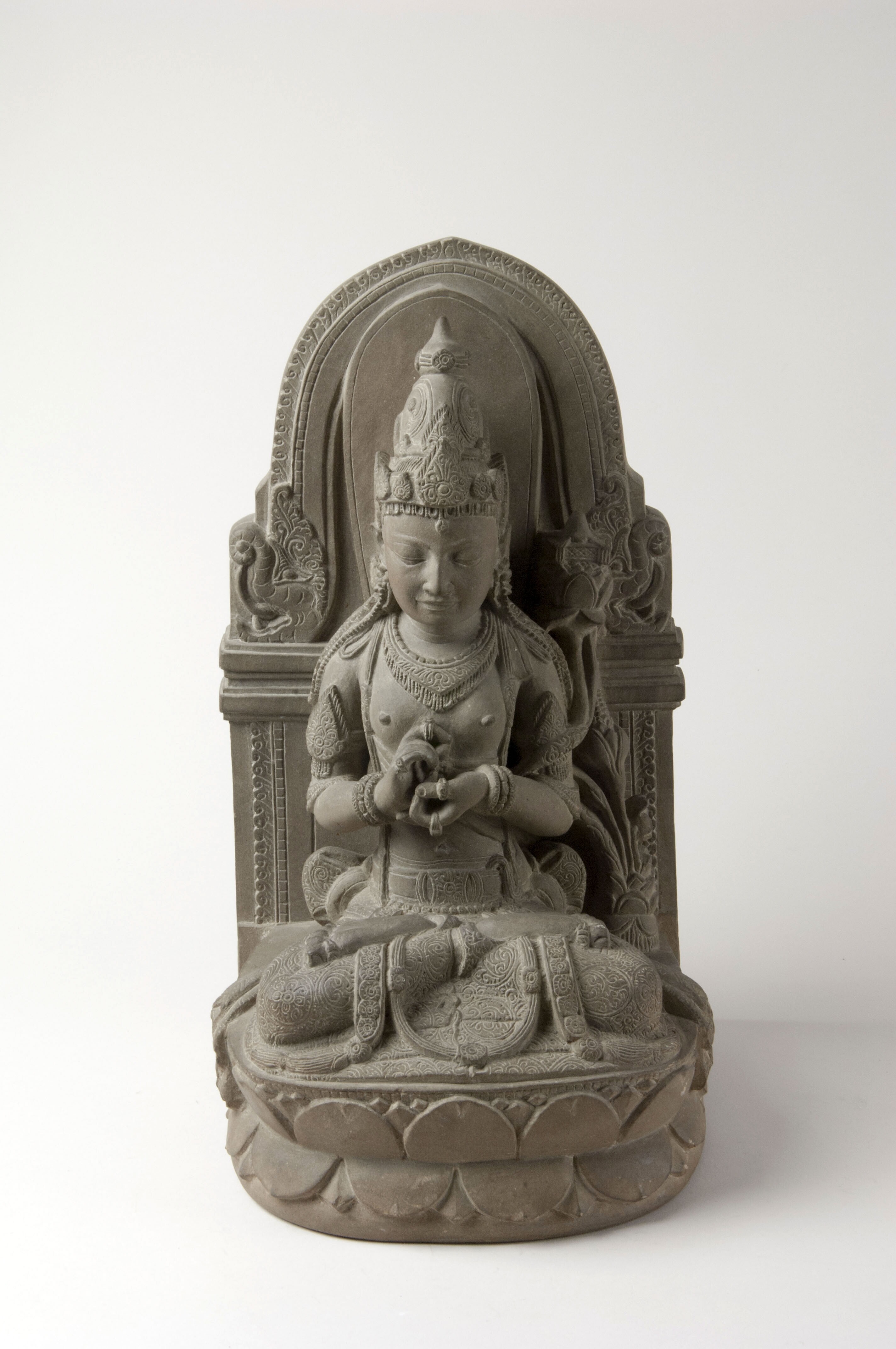 Andesiet stenen beeld van Pradjnaparamita gehouwen d...