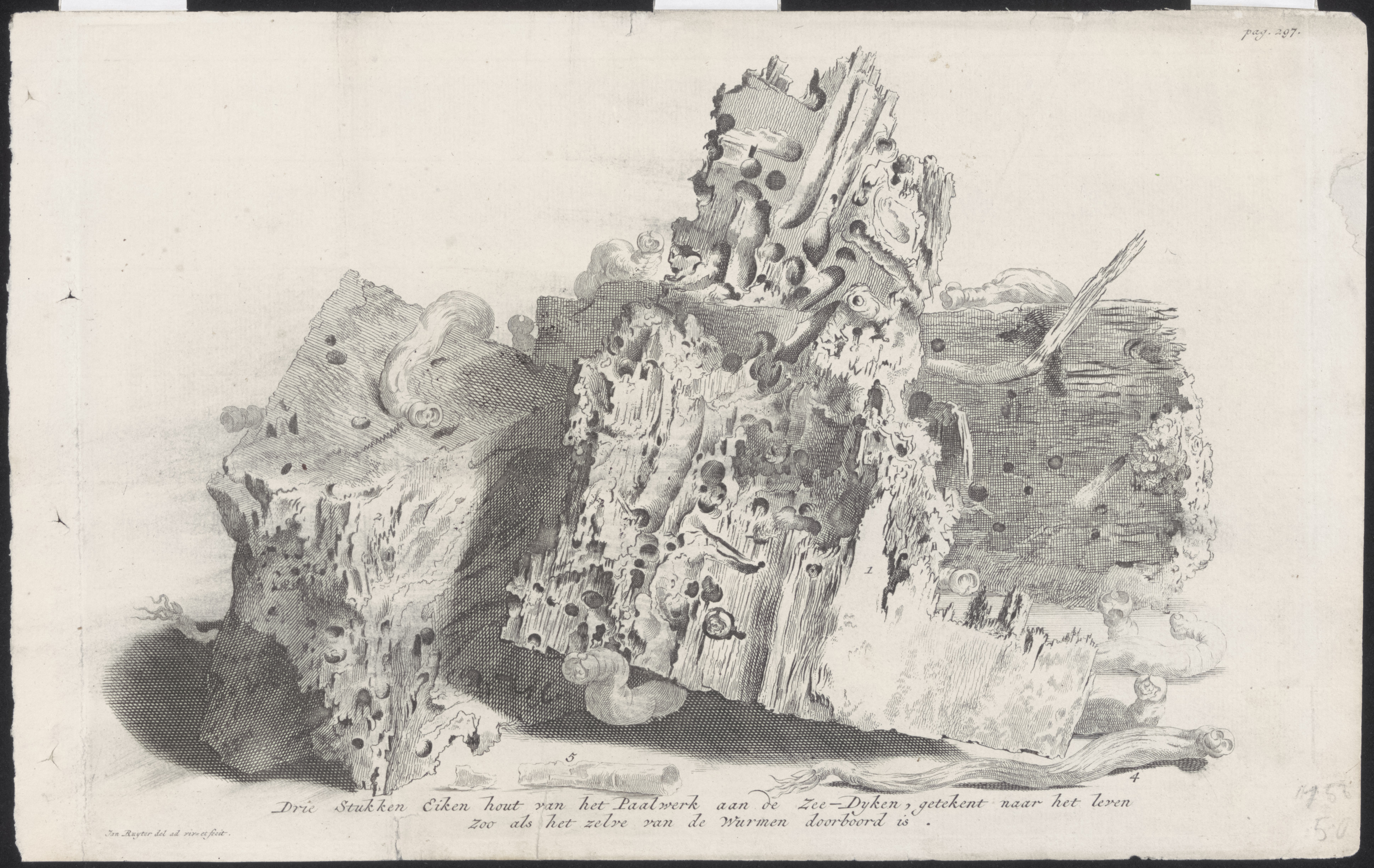 Drie Stukken Eiken hout van het Paalwerk aan de Zee-...