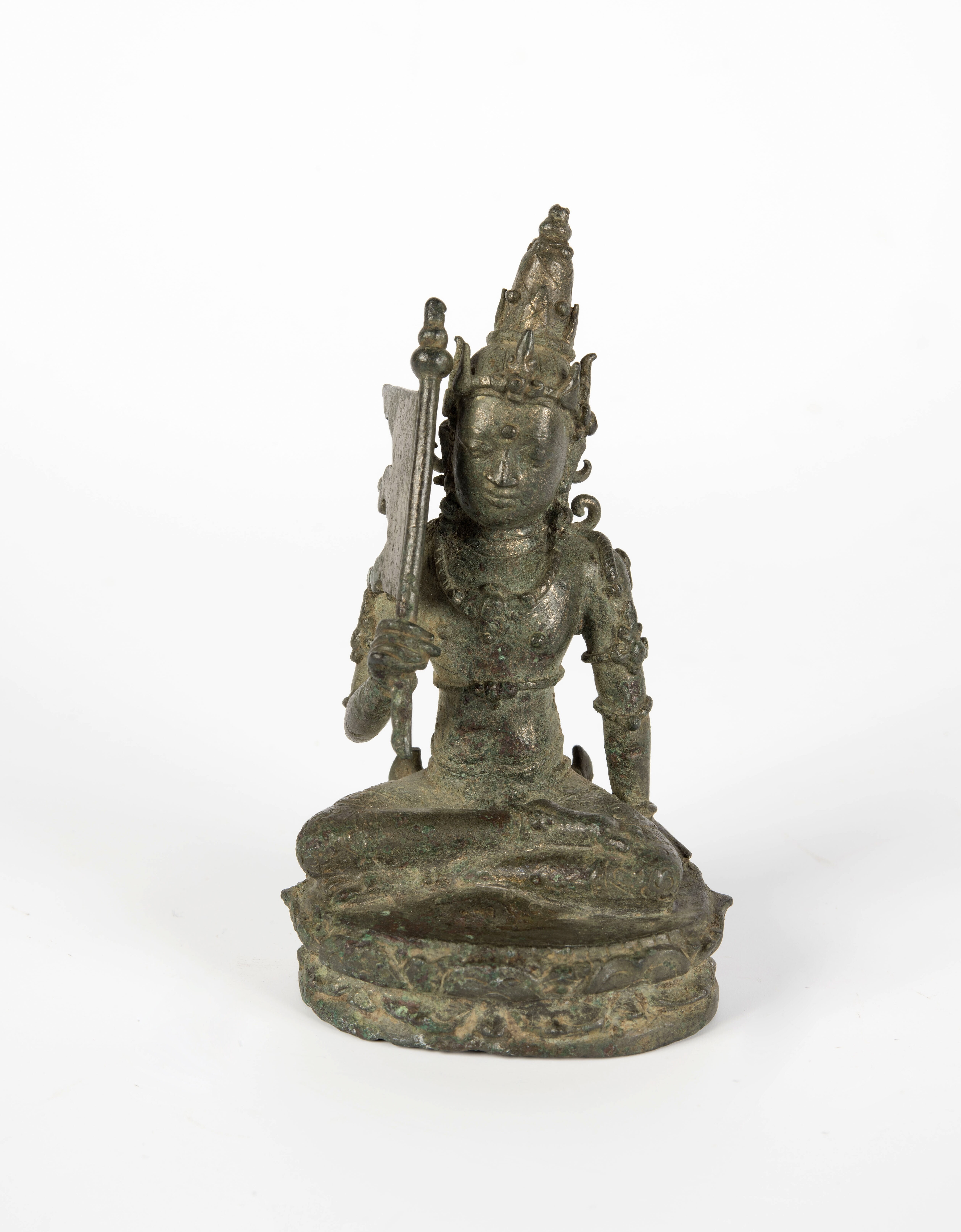Indo-Javaans beeldje manjusri in vajrasana op lotusk...
