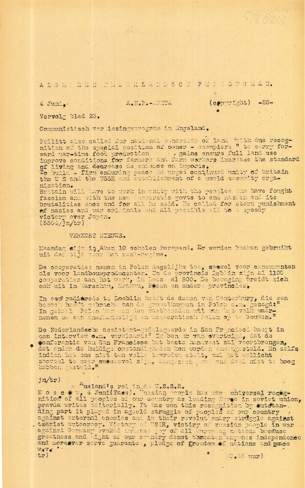 Vel: Algemeen Nederlandsch Persbureau, mededelingen,...