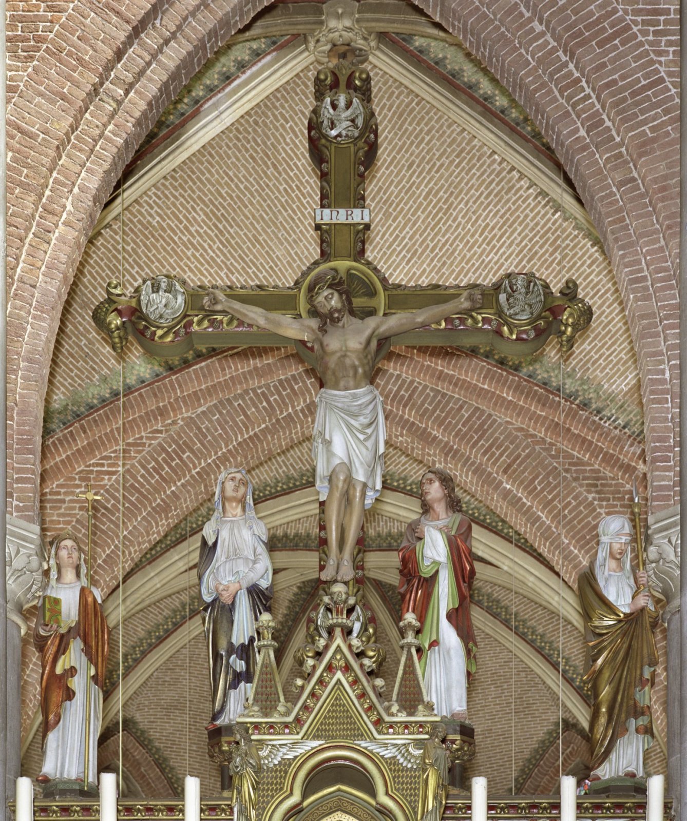 Christus aan het kruis met Maria, Johannes en Maria ...