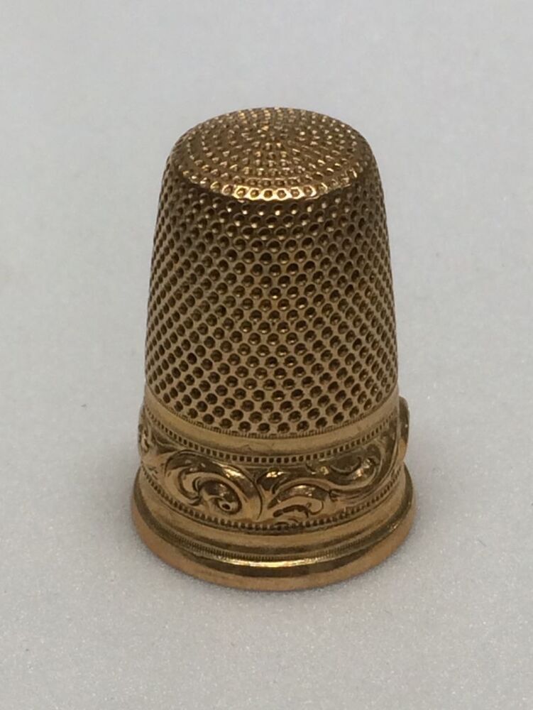 Gouden vingerhoed met bewerkte randen en gestippelde...