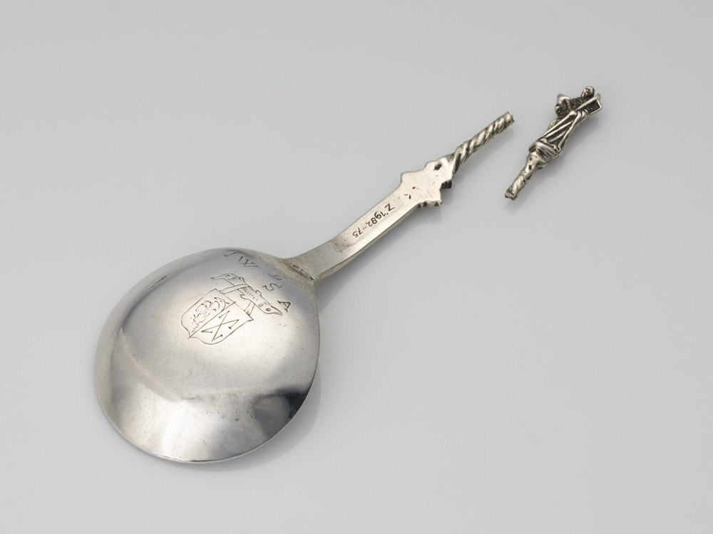 Zilveren pijpenpluizer met op de kop een vrouwefiguur.
