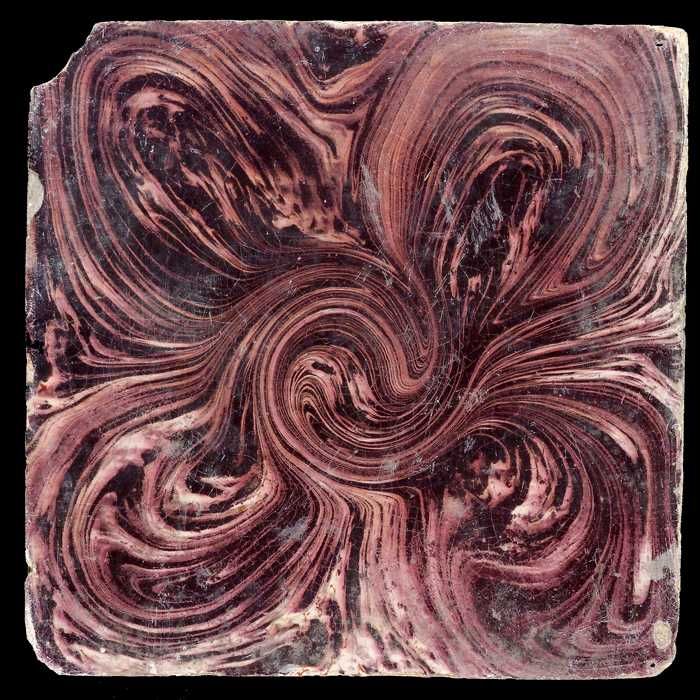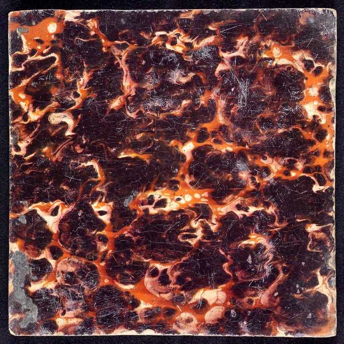 Wandtegel met gevlamd decor, gevloeide velden in paa...