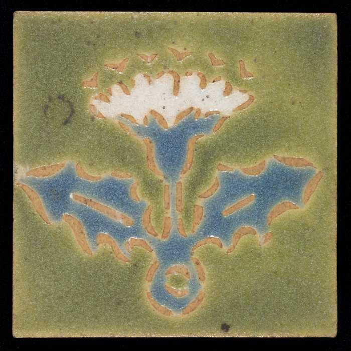 Klein formaat wandtegel met gesjabloneerde distel in...