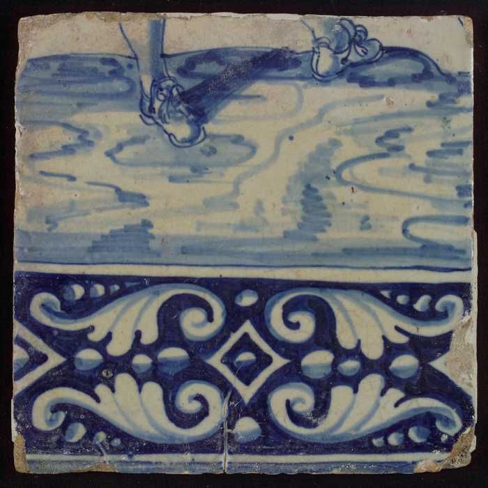 Tegel van tableau met in blauw voeten en gedecoreerd...
