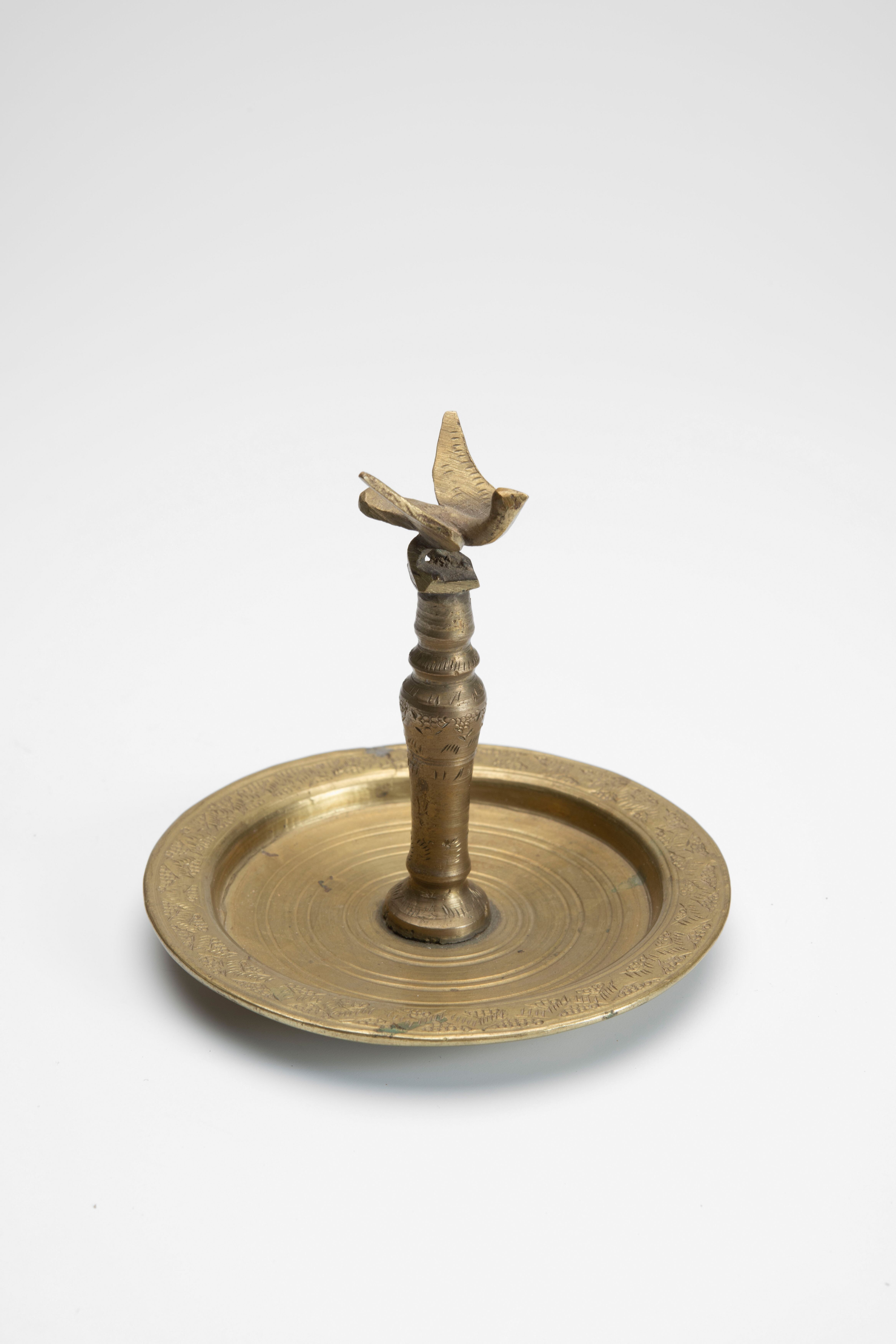 Messing sirihbladhouder met daarop de afbeelding van...