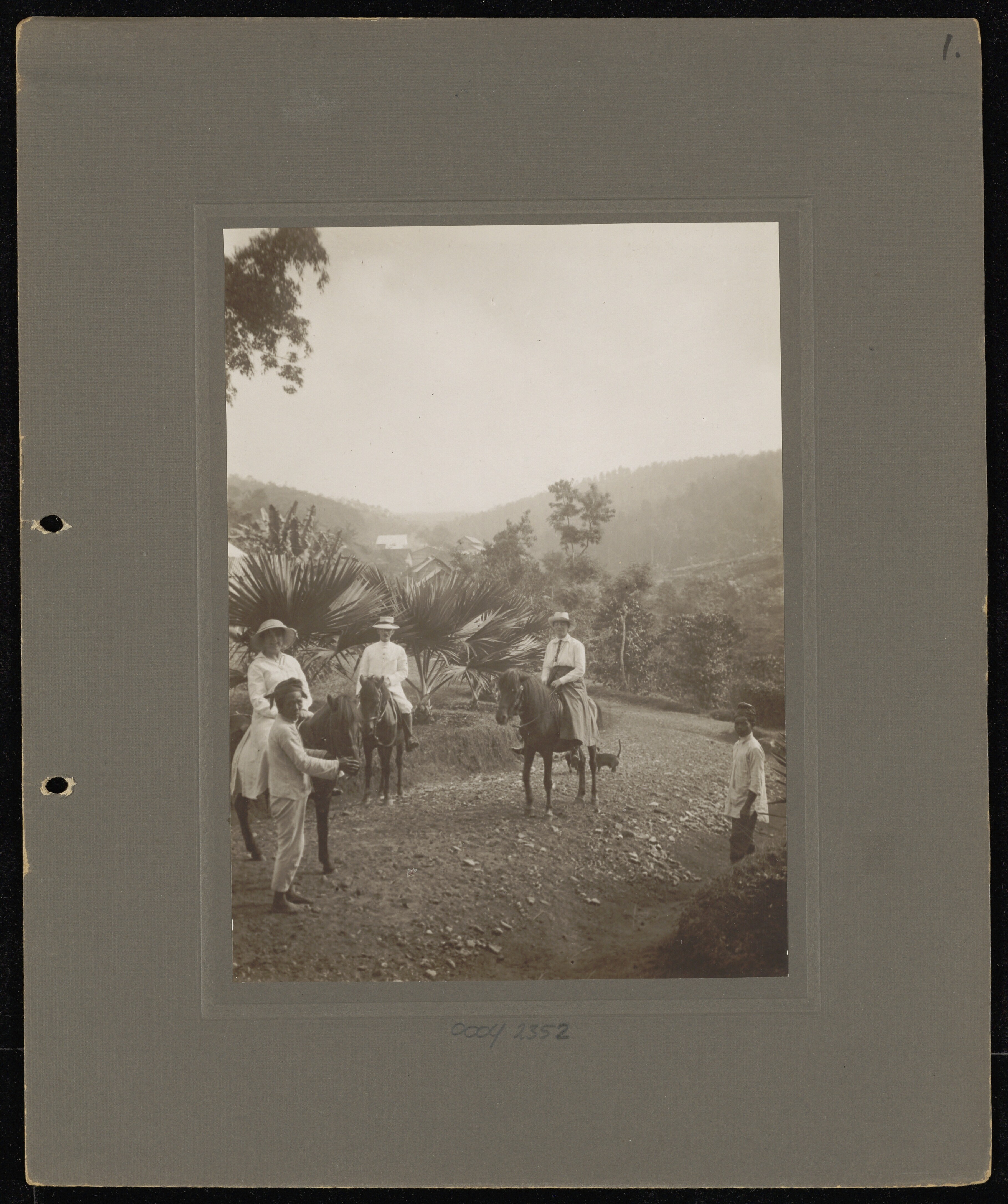 Europeanen te paard voor het administrateurshuis van...