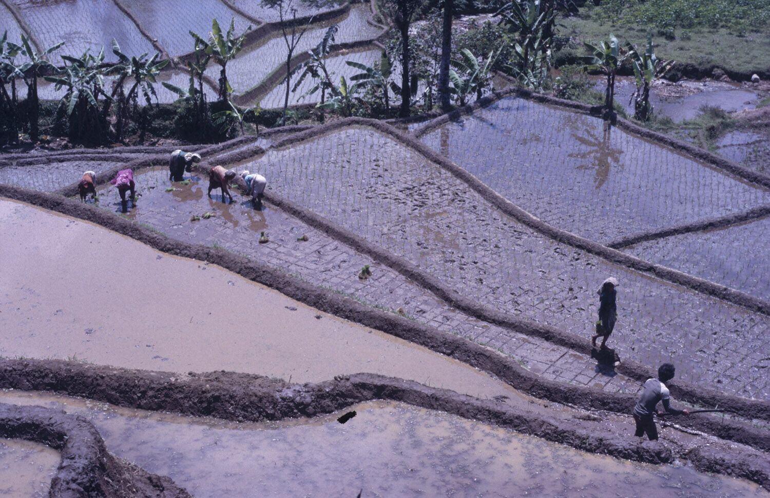 Het uitplanten van bibit in rijstterrassen