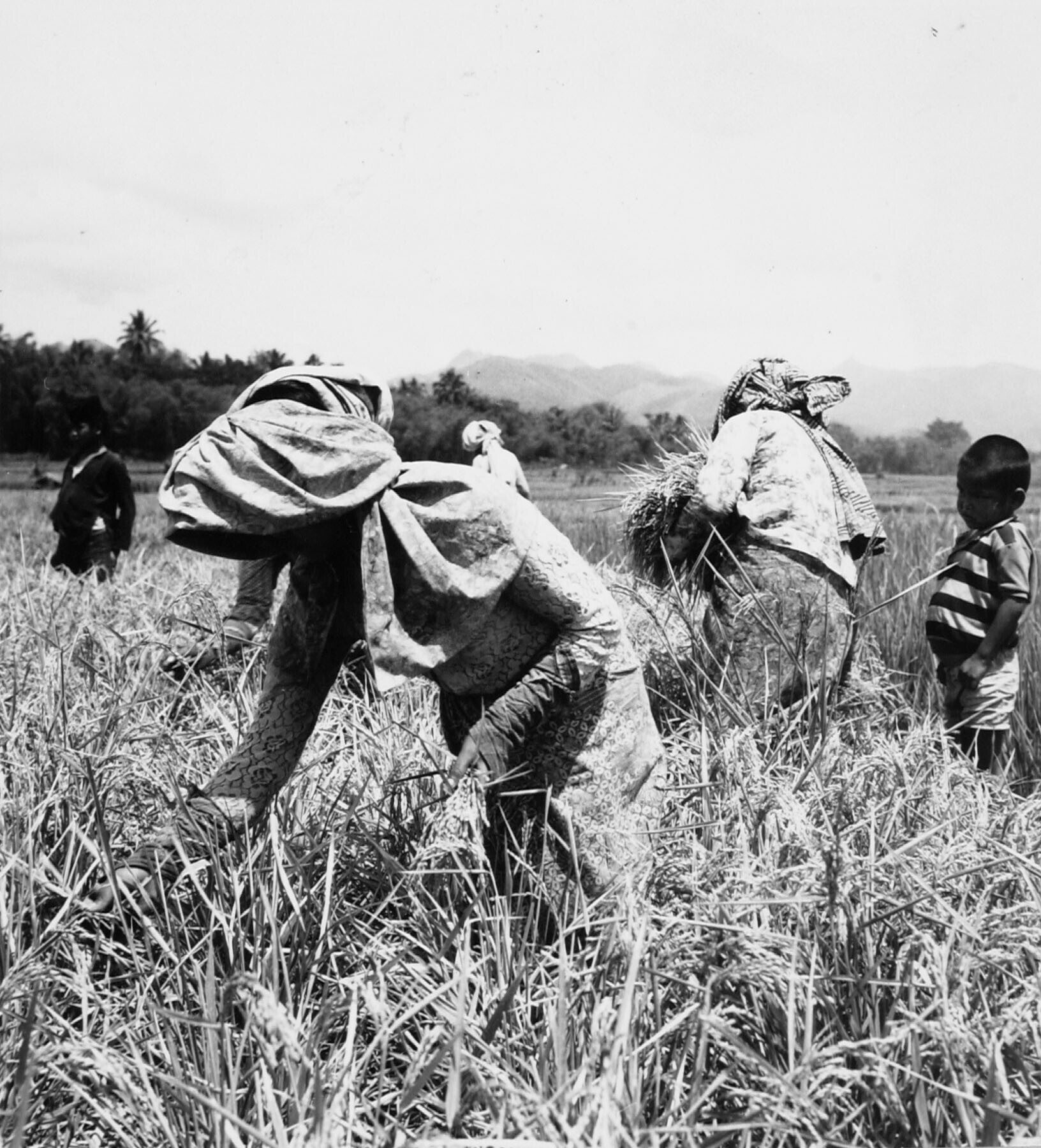 Vrouwen wieden het onkruid tussen de rijstplanten