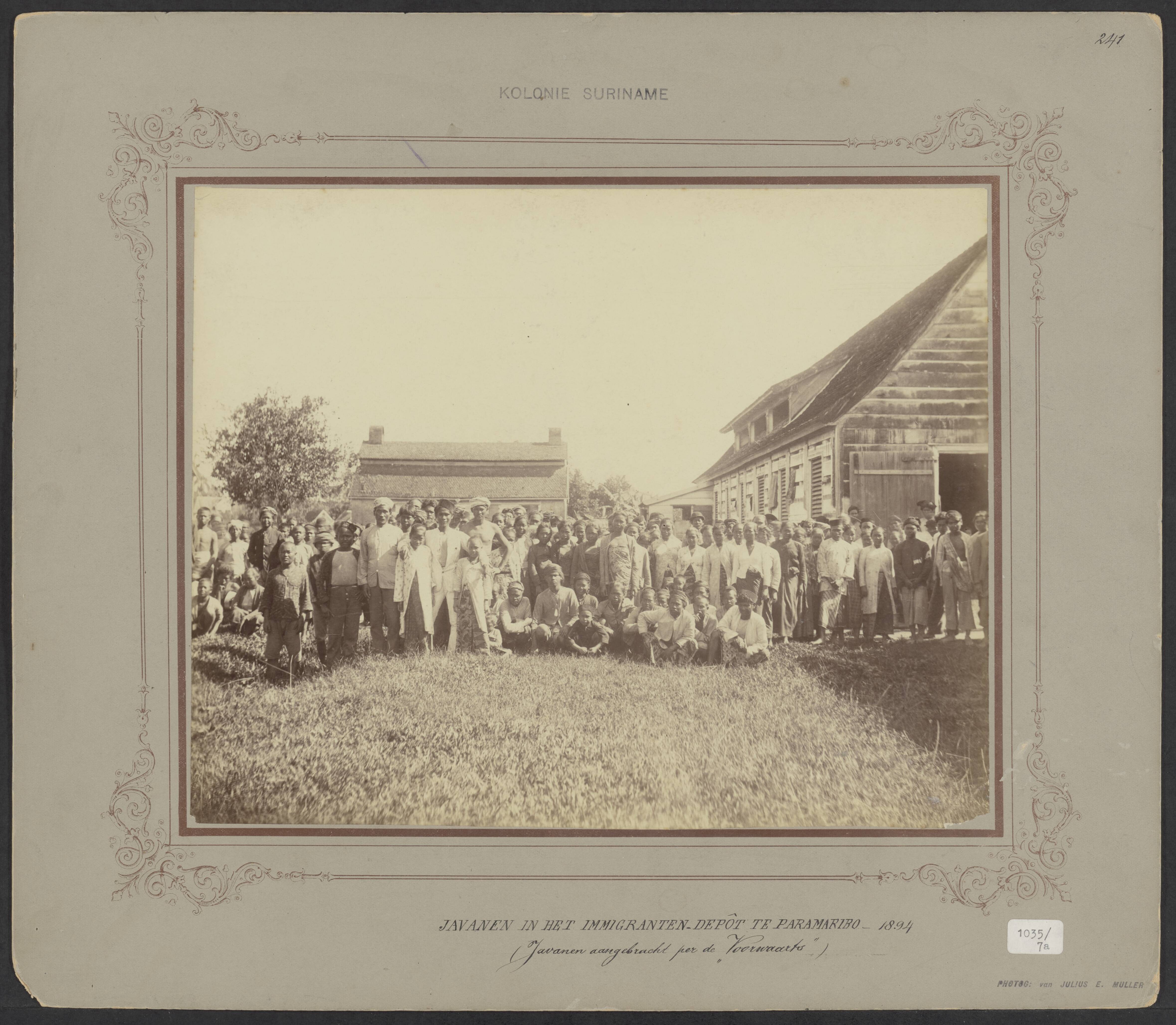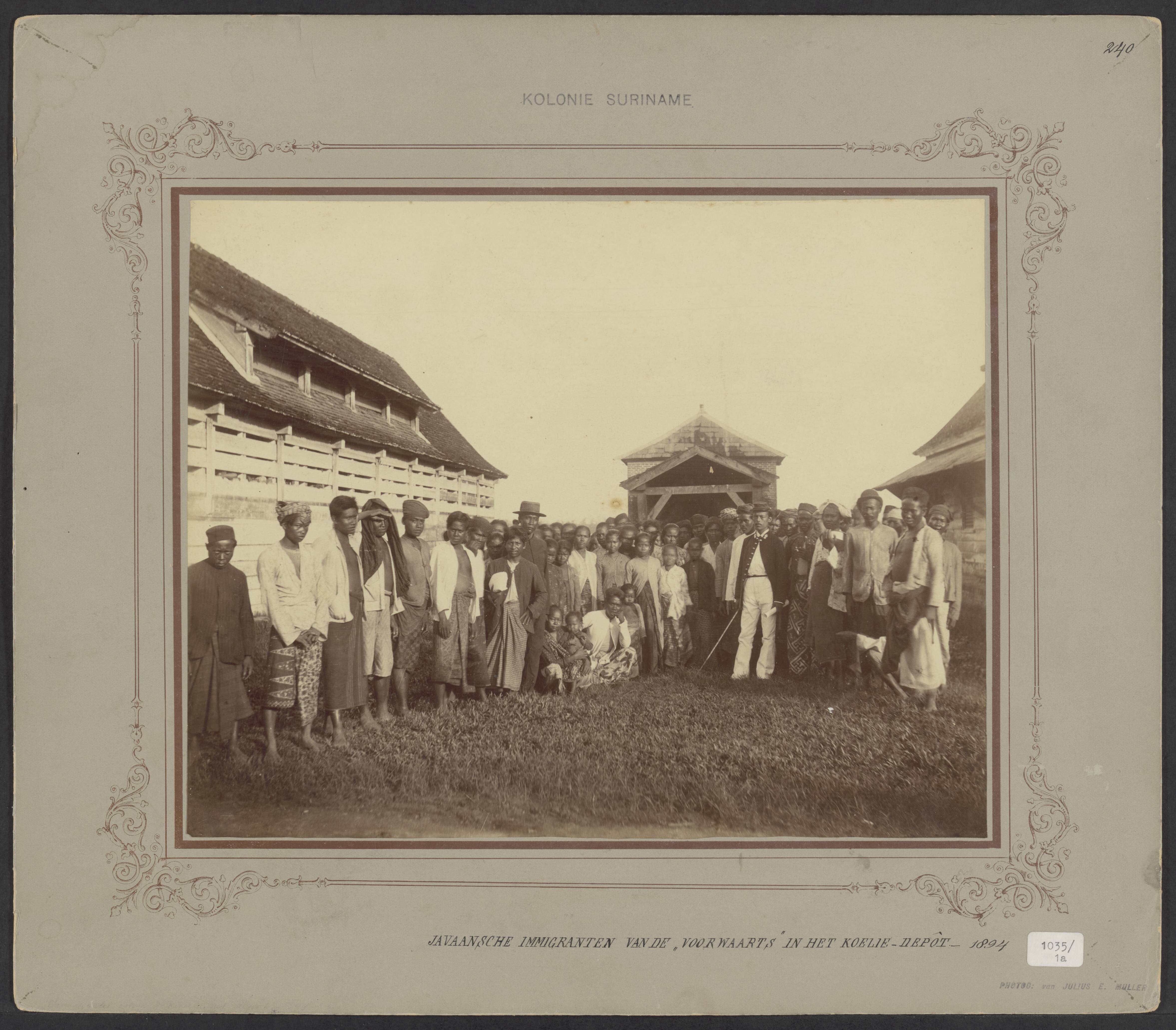 Javaanse immigranten in het depot te Combé na aankom...