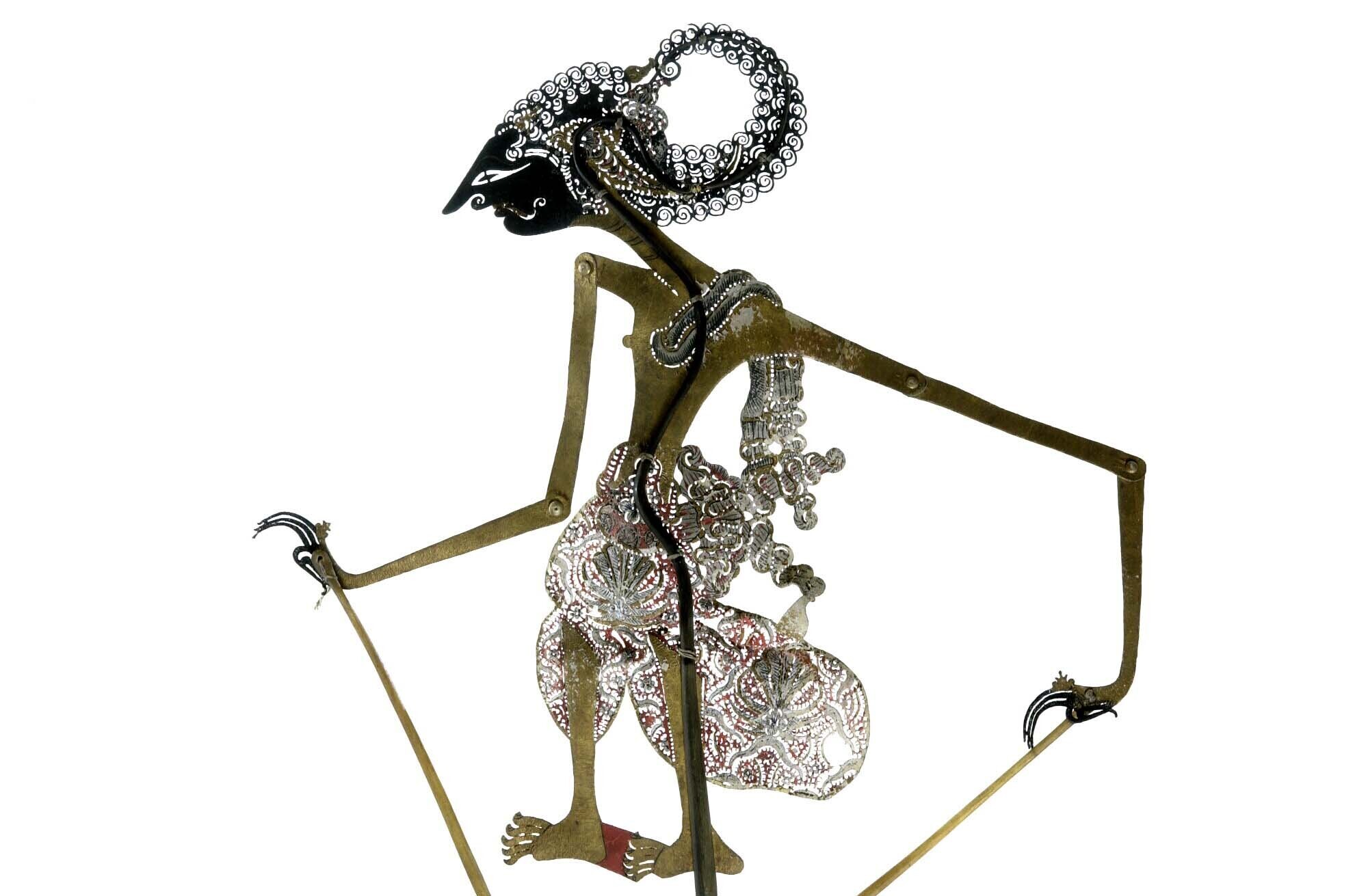 Wajangpop voorstellende een vrouwelijke Javaanse bed...