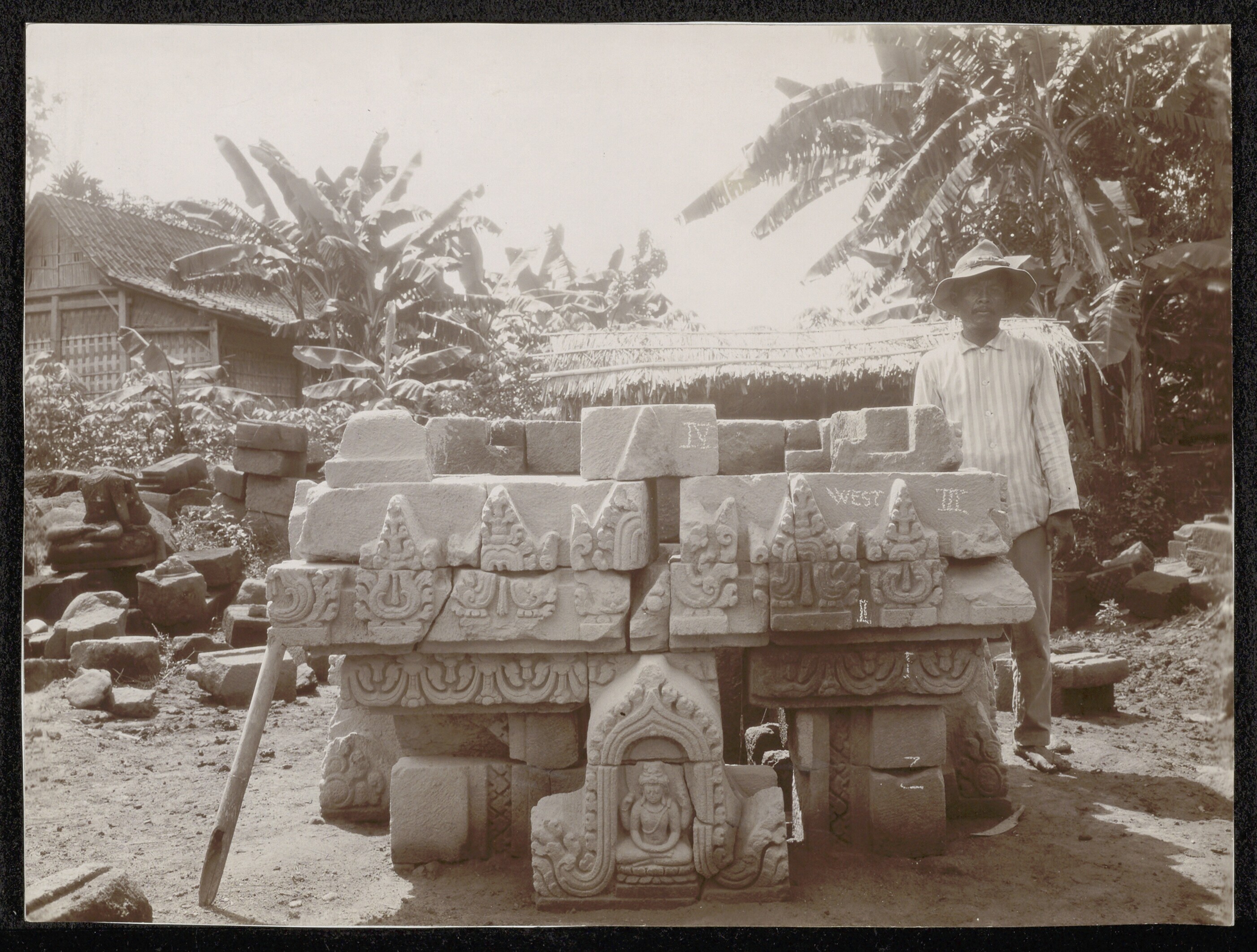 Delen van een Indo-Javaanse tempel bij Karangnongko ...