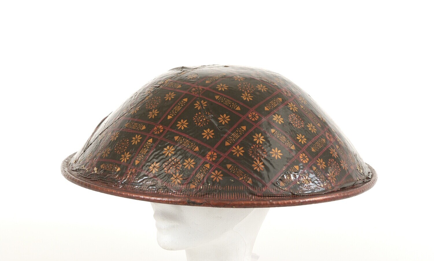 Gevlochten en beschilderde koetsiershoed van bamboe ...
