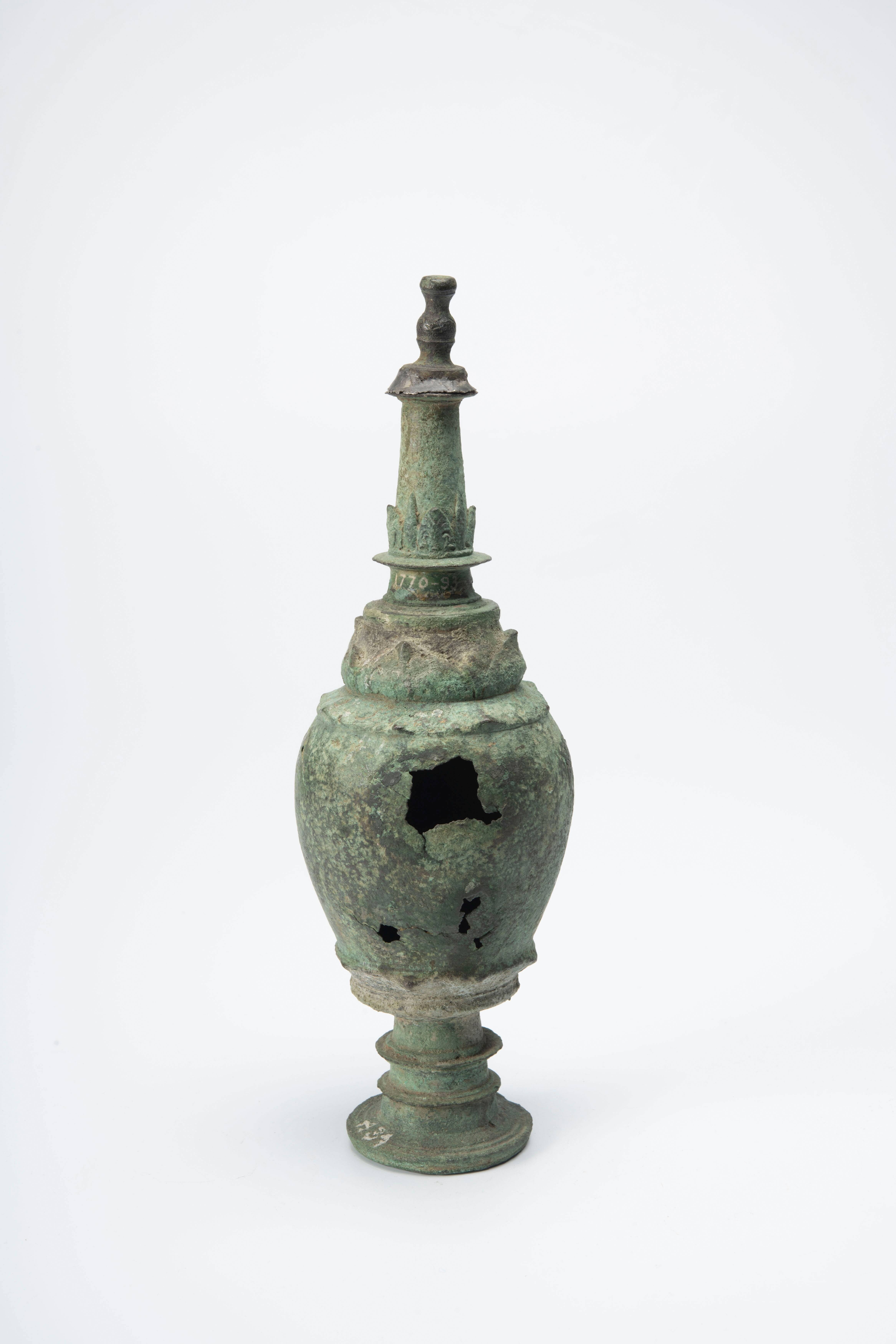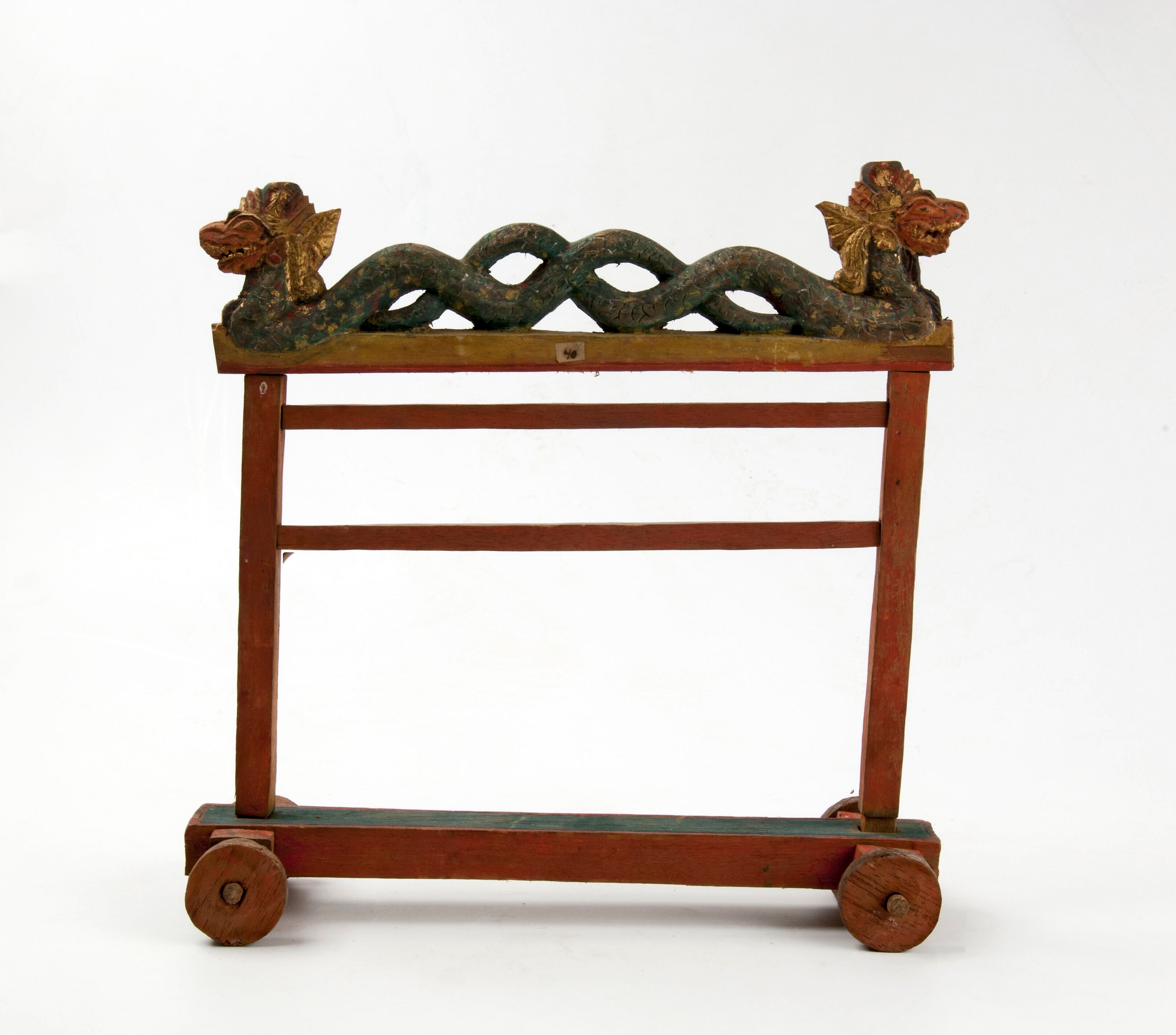Onderdeel van hout, vermoedelijk van een gongstandaard