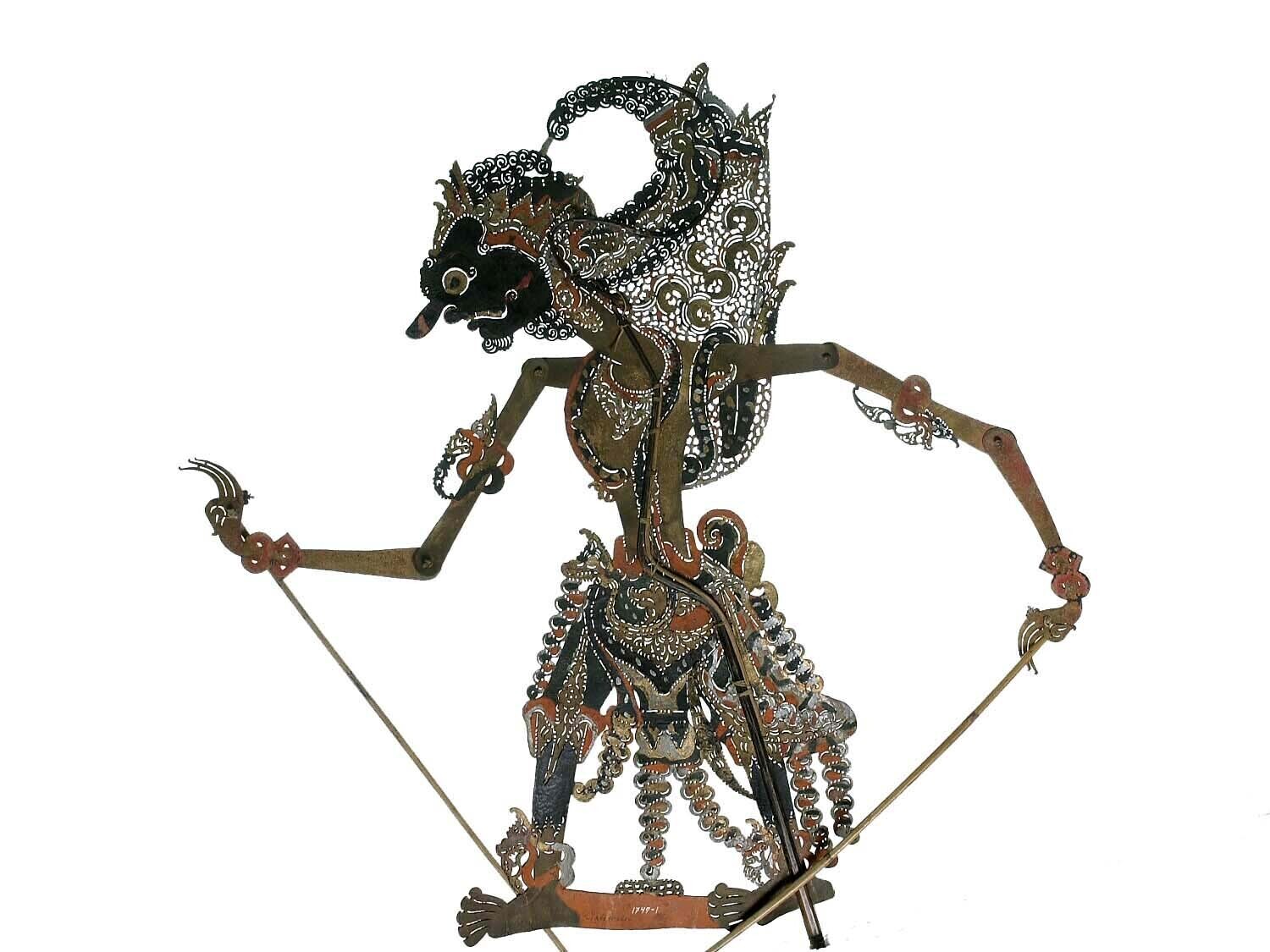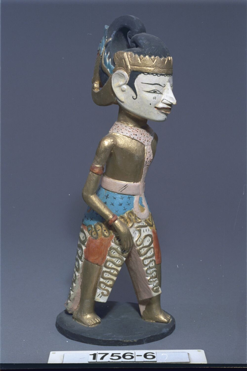 Beschilderd houten beeld in wajangstijl voorstellend...