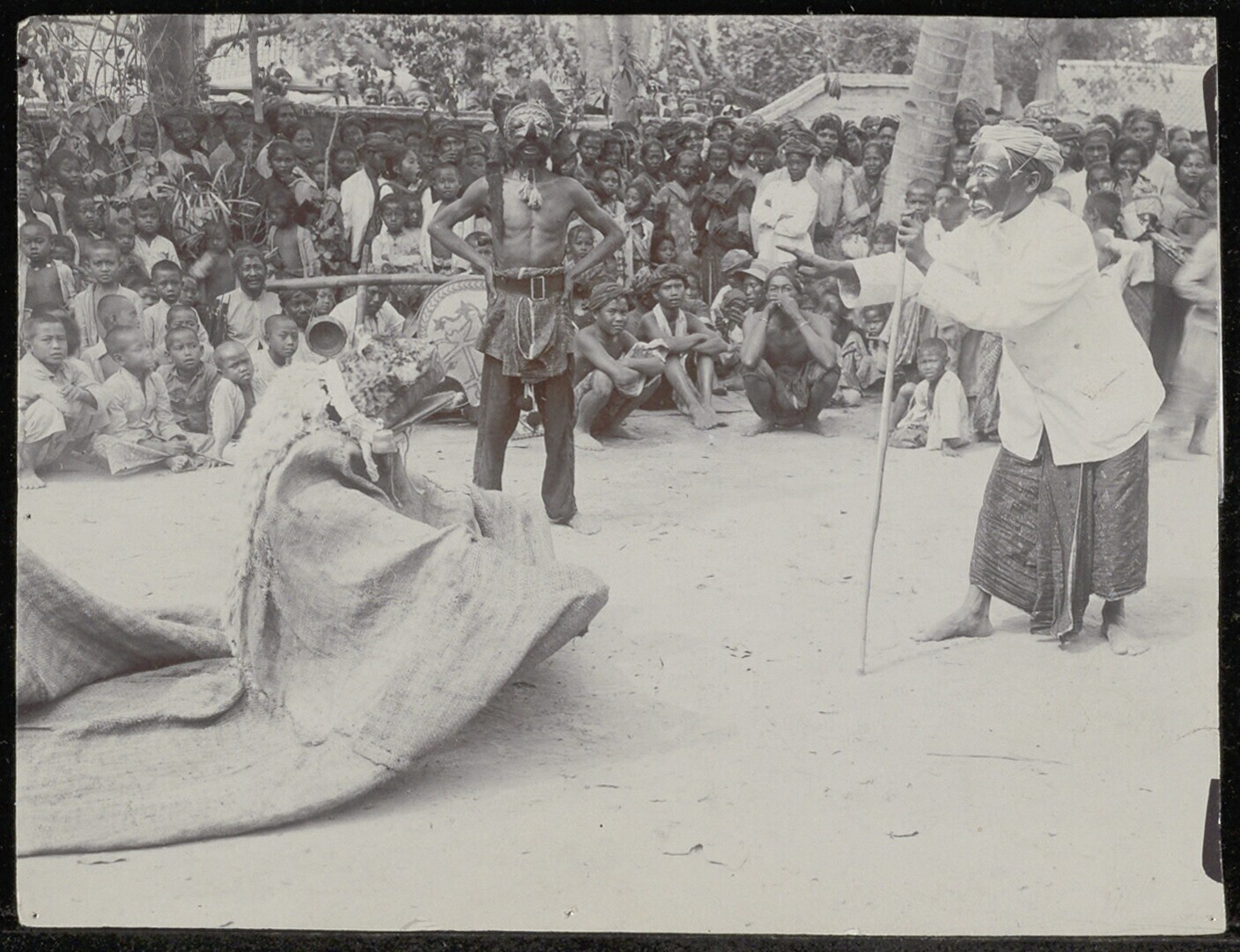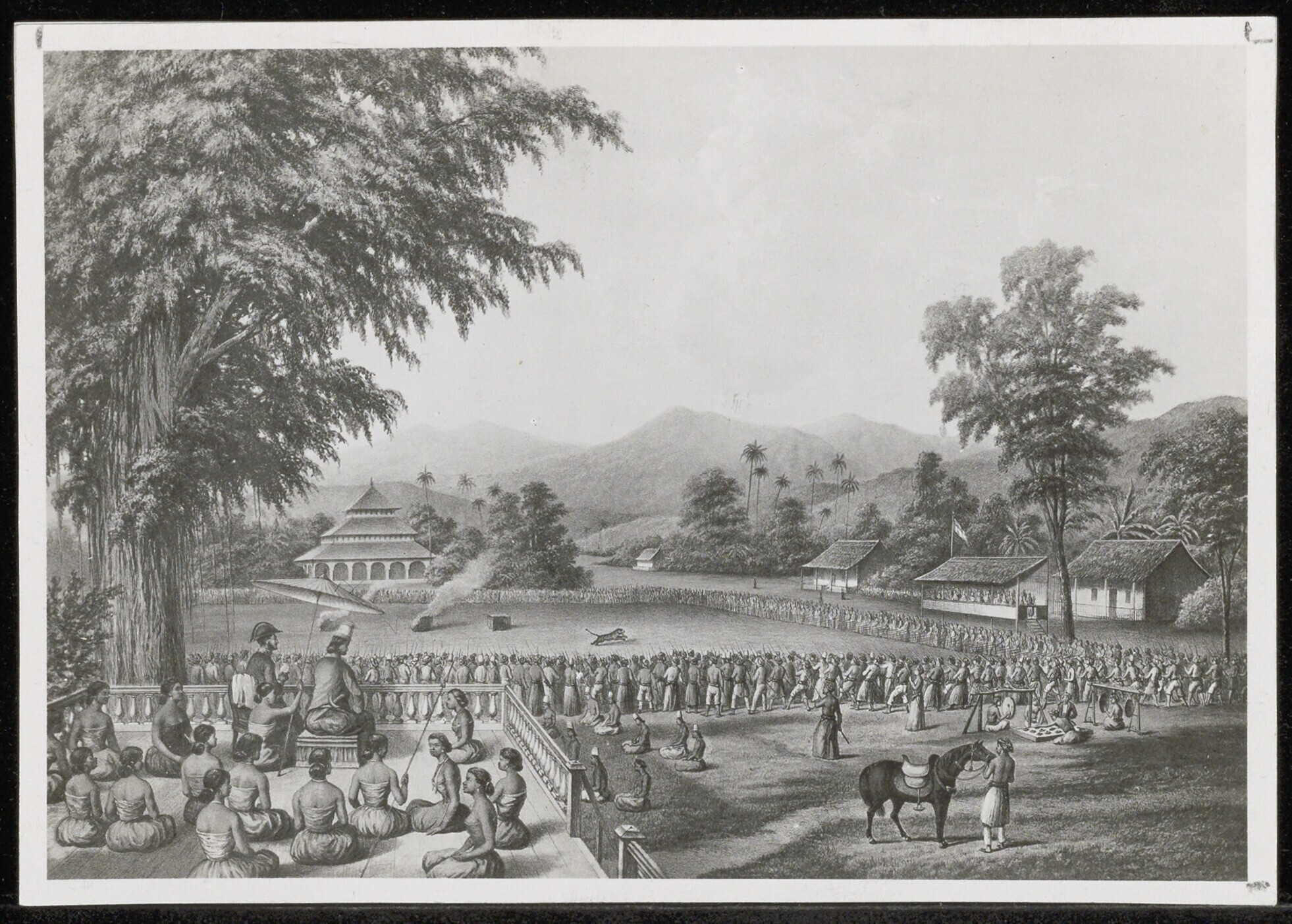 Gezicht op een tijgergevecht tijdens Sampokfeest (?)...