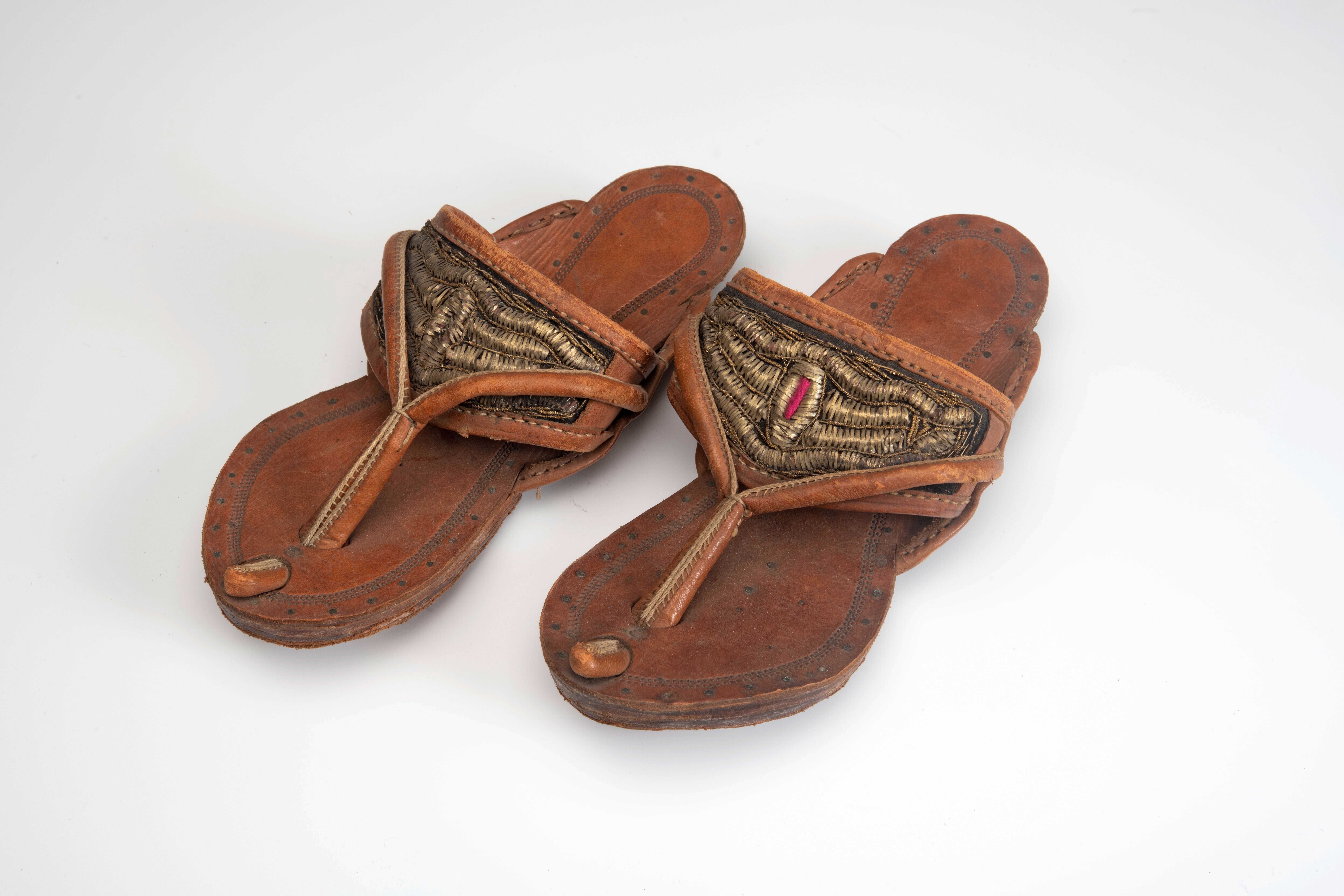 Borduurwerk op paars fluweel, bestemd voor sloffen