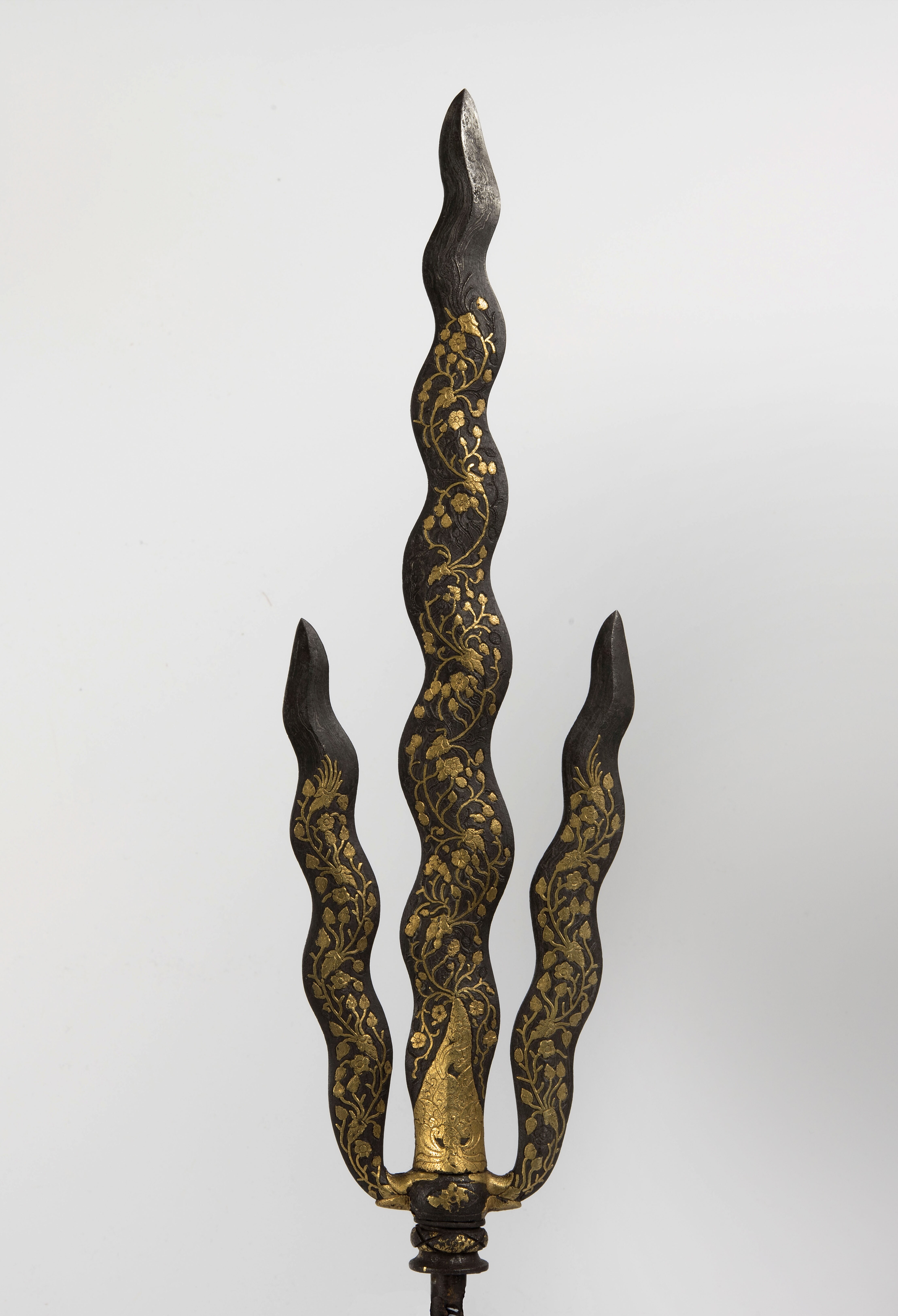 Houten lans voorzien van een rietbladvormige ijzeren...