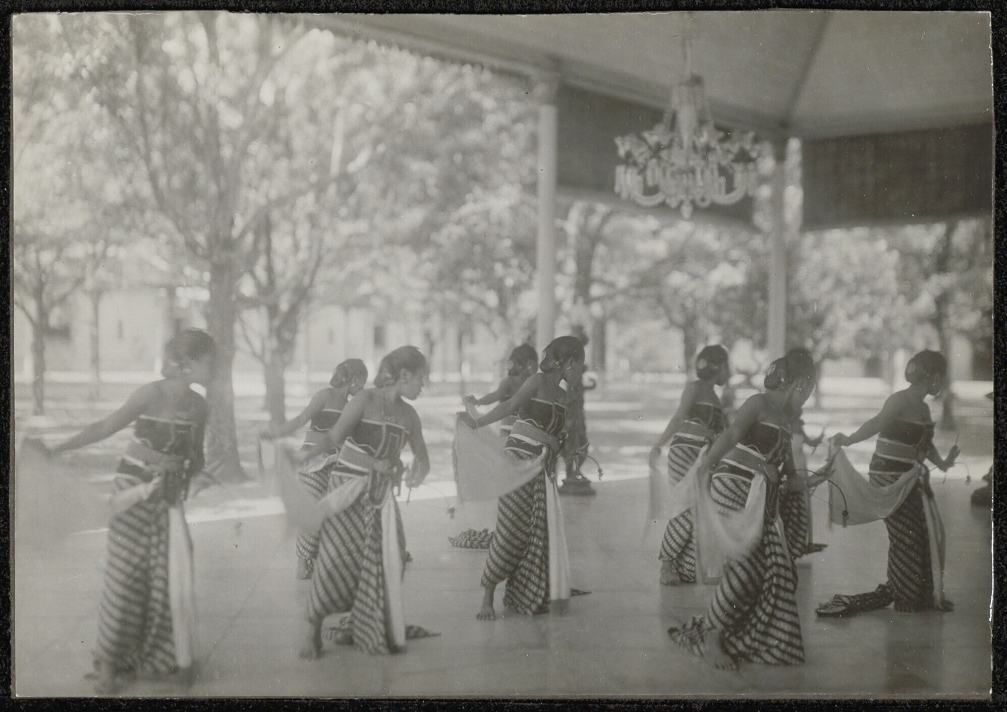 Dag (leider) met twee djanger-speelsters. Op den ach...
