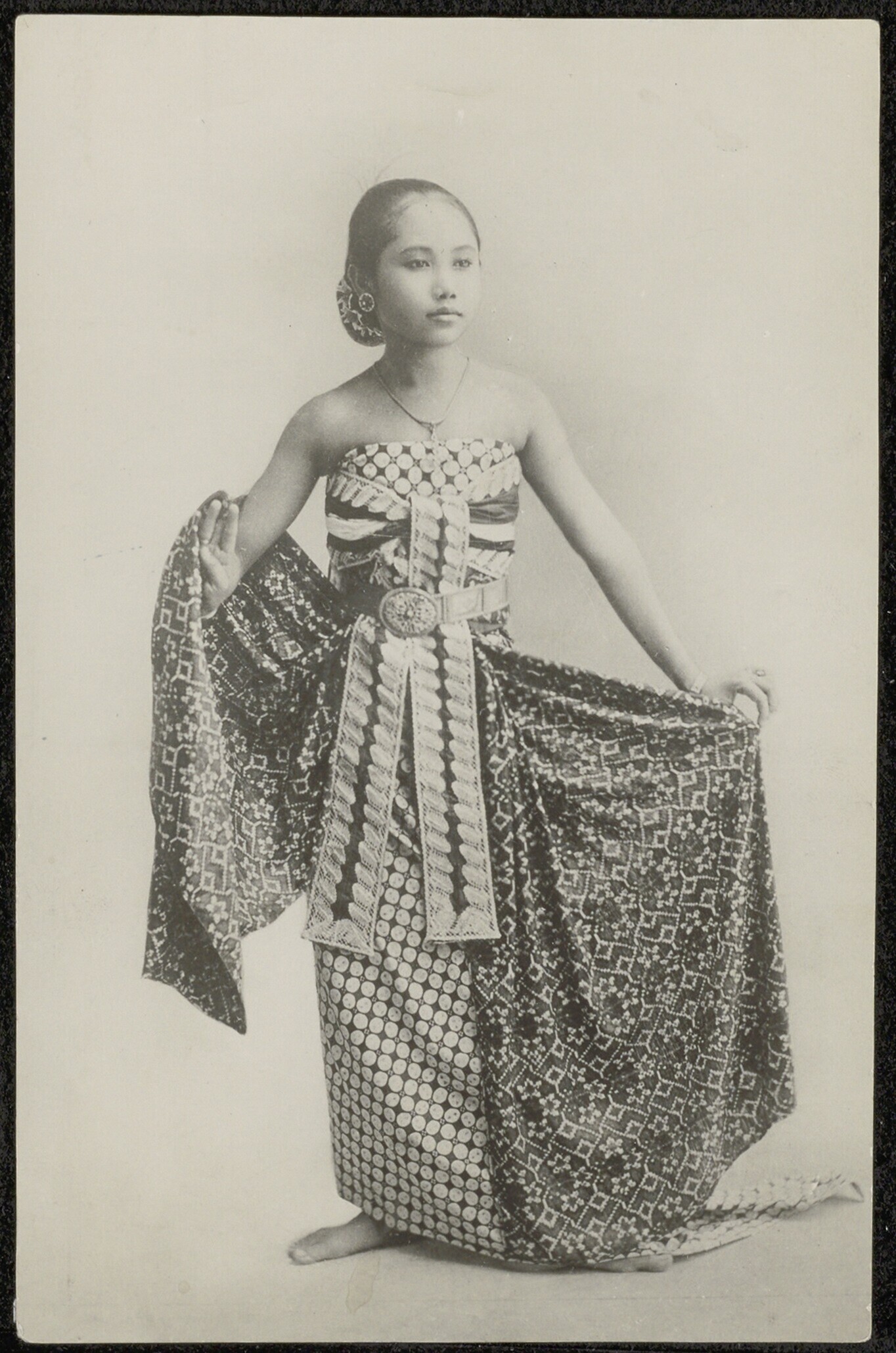 Portret van een Javaanse danser in traditionele hofk...