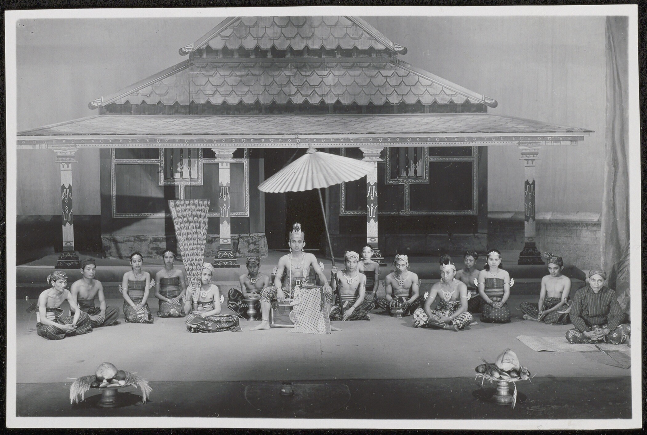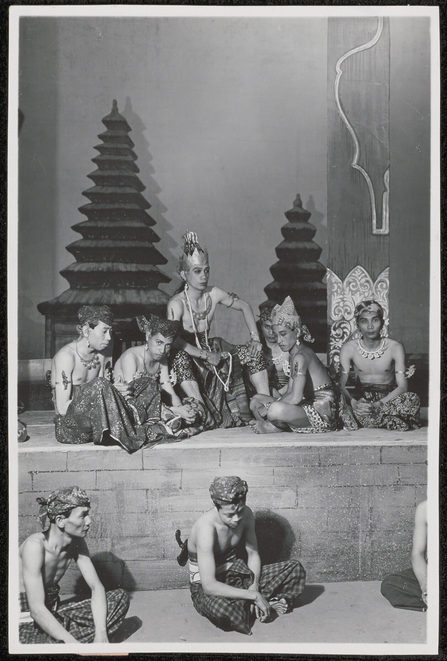 Groepsportret van Wayang Wong dansers in traditionel...