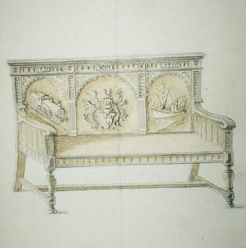 Ontwerptekening jubileumbank Noord-Brabantsche-Duits...