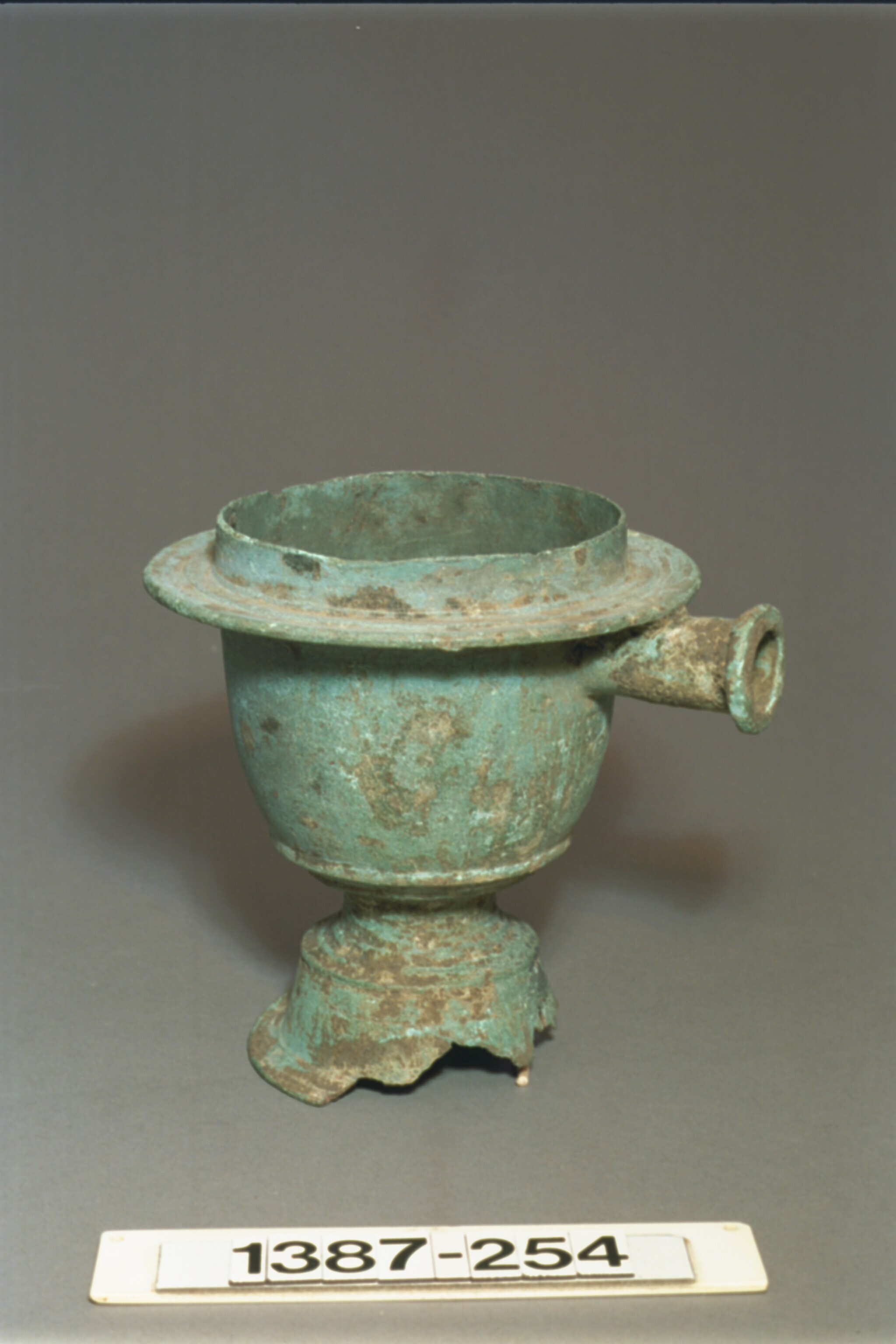 Bronzen wierookbrander waarvan het voetstuk gebroken...