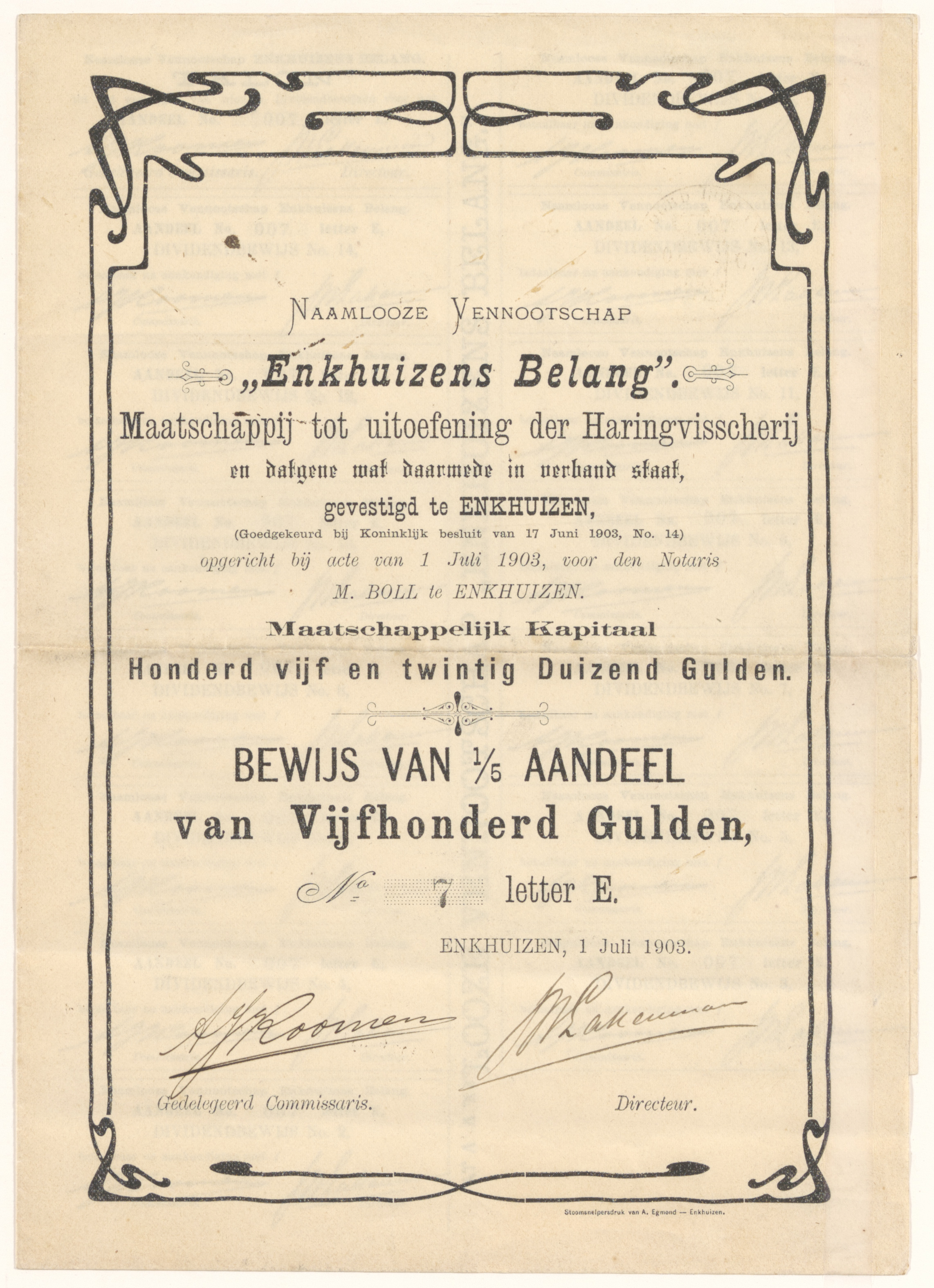Bewijs van 1/5 aandeel in de Naamloze Vennootschap E...
