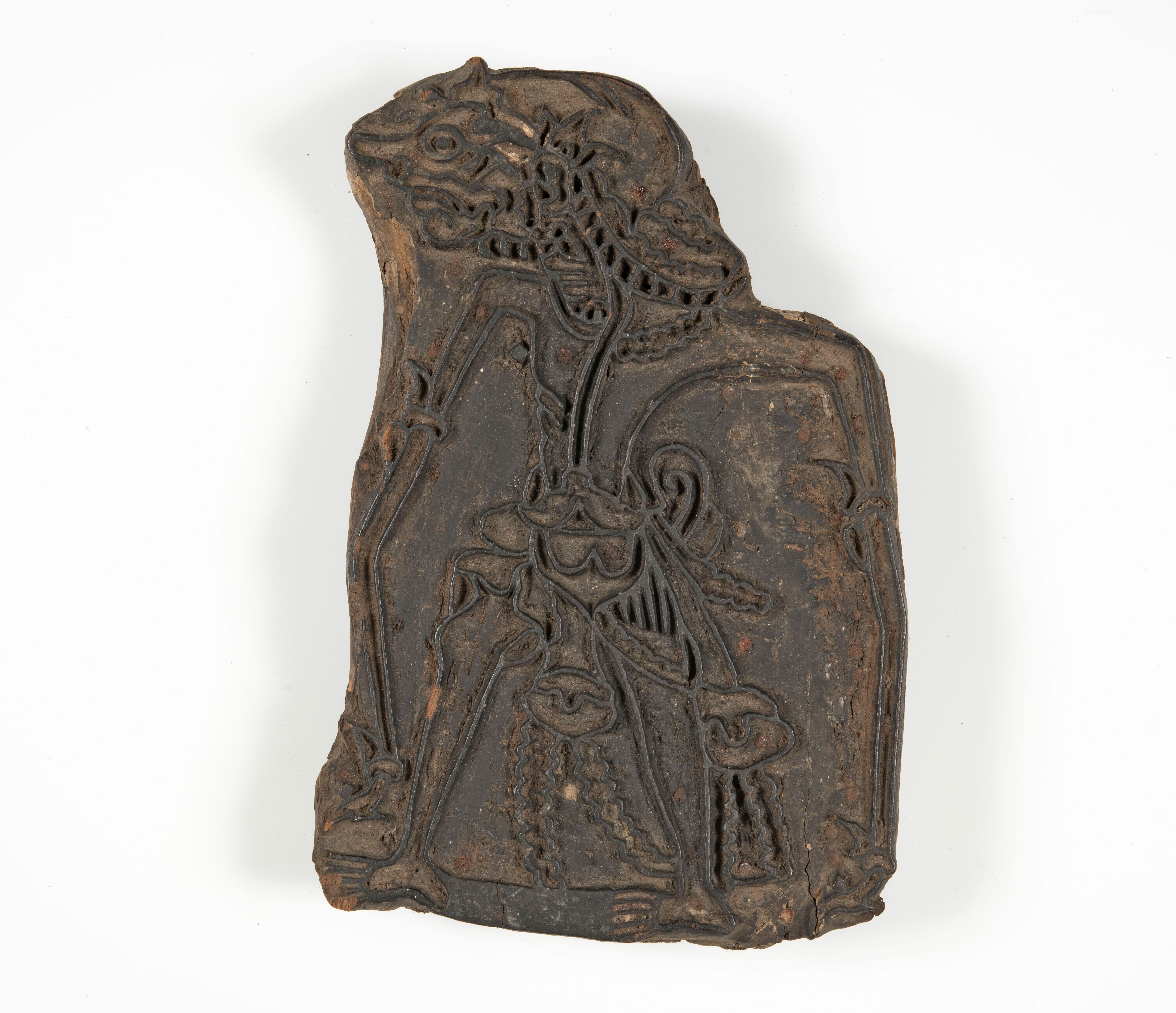 Houten cliché voor het drukken van een wajangfiguur ...